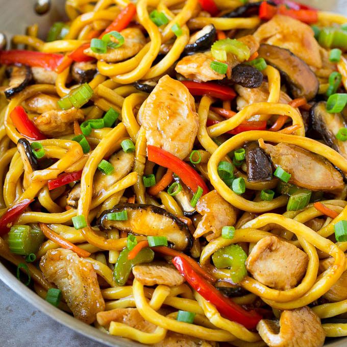 These stir fry noodles are loaded with chicken and colorful vegetables with a savory sauce. A remake of the take out favorite that tastes even better than what you'd get at a restaurant!