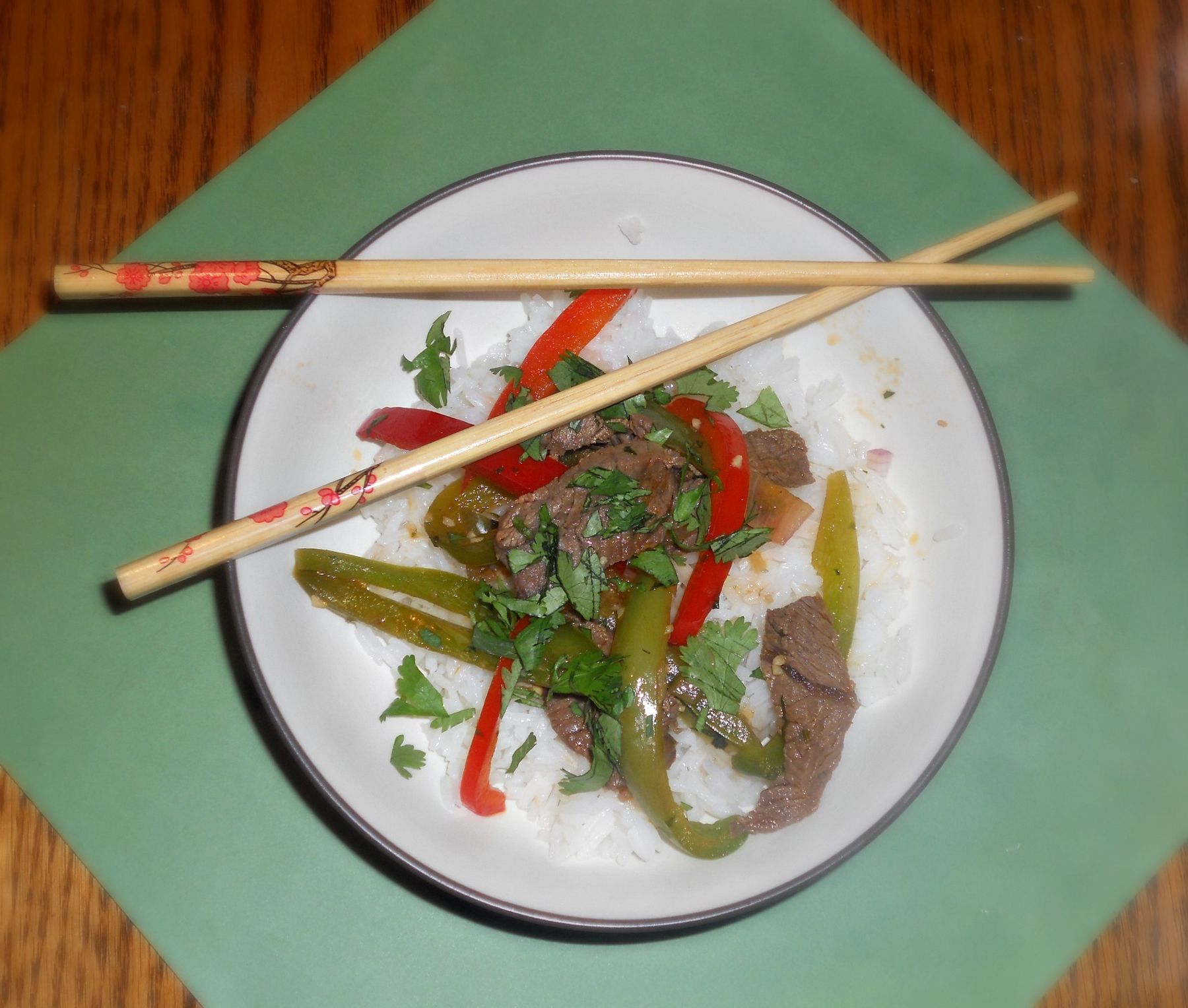 Stir-fry beef and peppers with a slightly sweet and spicy sauce.