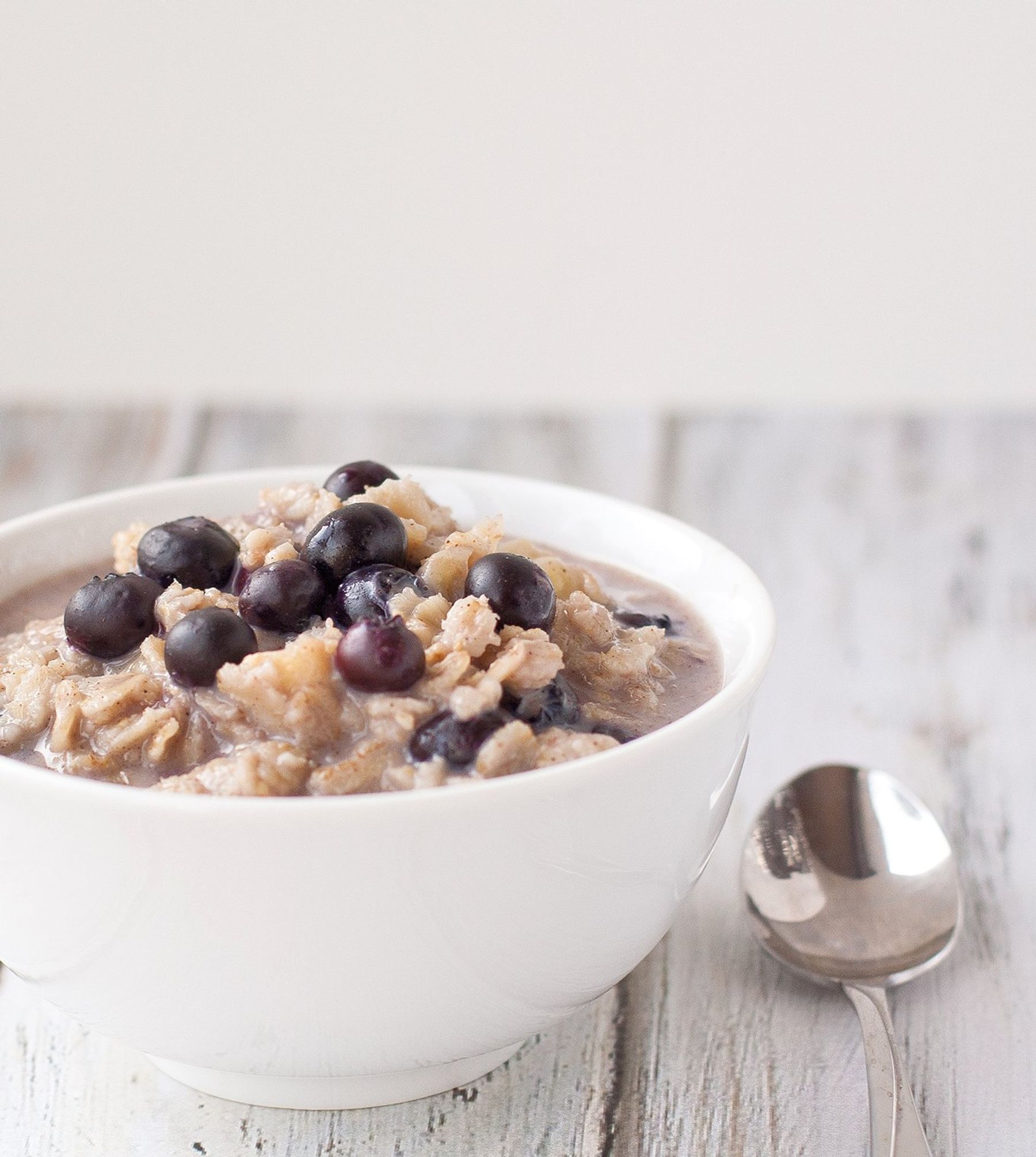 Bring the water and milk just barely to a boil. Add in the oats, bananas, cinnamon, and salt. Boil it on low for about 5 minutes or until oatmeal is tender. If you use fresh blueberries you can add them...
