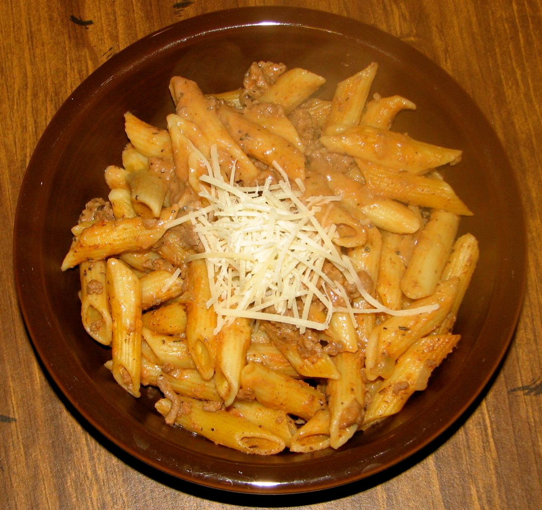 Cook the pasta according to the package directions, reserving 1 c. of the pasta cooking water before draining. While the pasta cooks, heat a large skillet over medium high heat and add the olive, onion and...