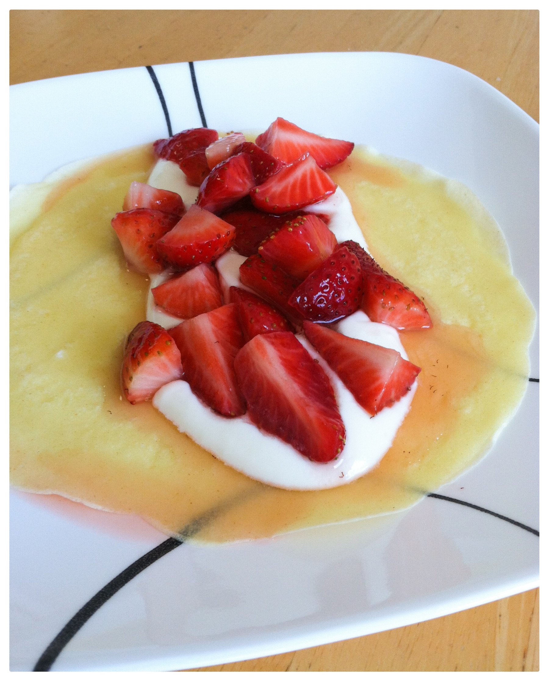 These crepes filled with sweetened cream cheese filling and fresh strawberries are a delicious treat that is perfect for breakfast or dessert!
