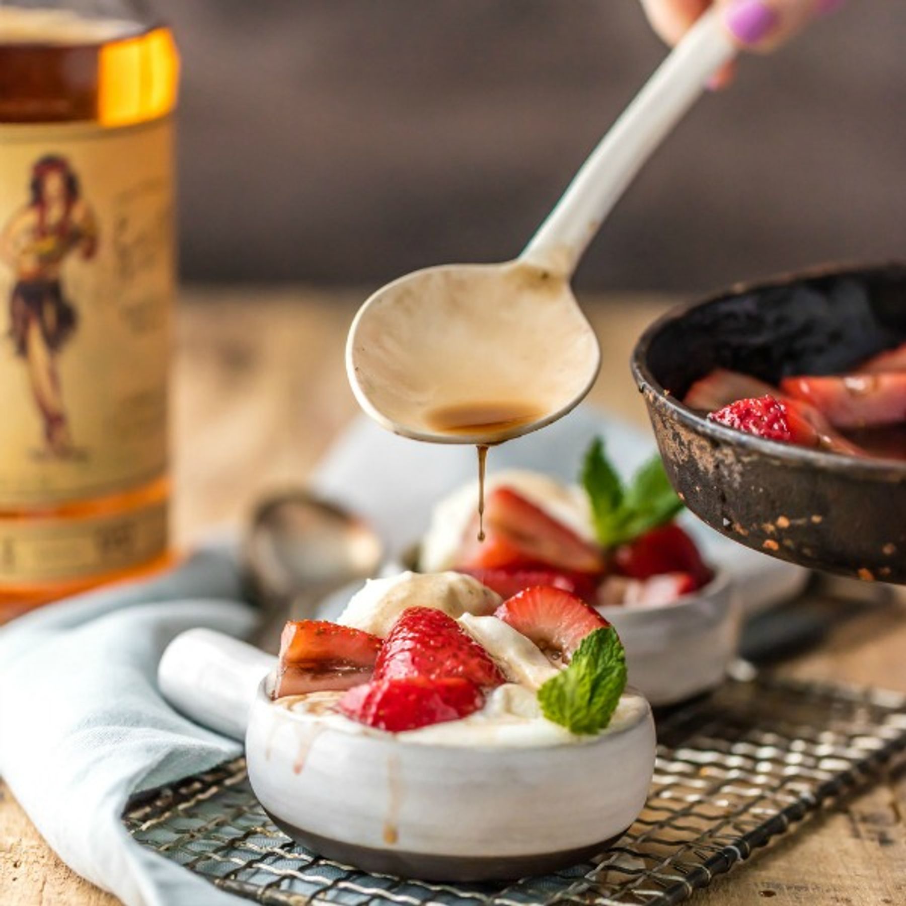 1. Heat butter, sugar, and rum in a medium skillet over medium low heat. Cook for 4-6 minutes, stirring while you cook. If the mixture catches on fire, turn off the heat until flame subsides and then...