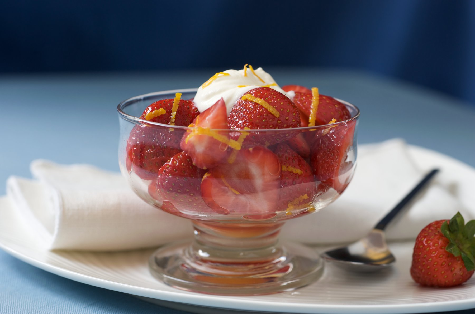 In a large bowl, place the washed, stemmed and quartered berries. Add the orange liqueur. Stir well and allow to macerate for 15-30 minutes.