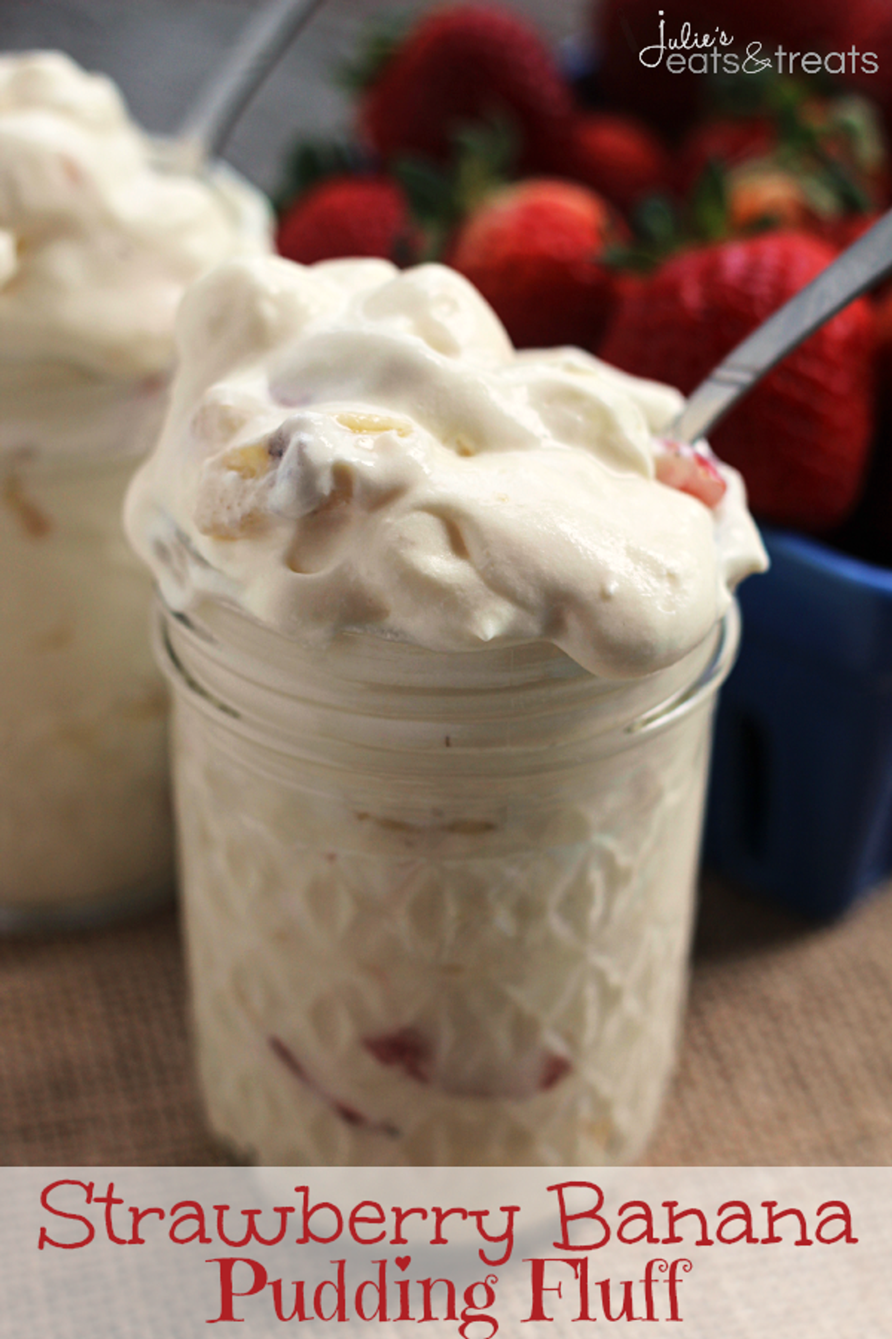 Strawberry Banana Pudding Fluff ~ Light, Fluffy Pudding Loaded with Fresh Strawberries, Bananas and Marshmallows!