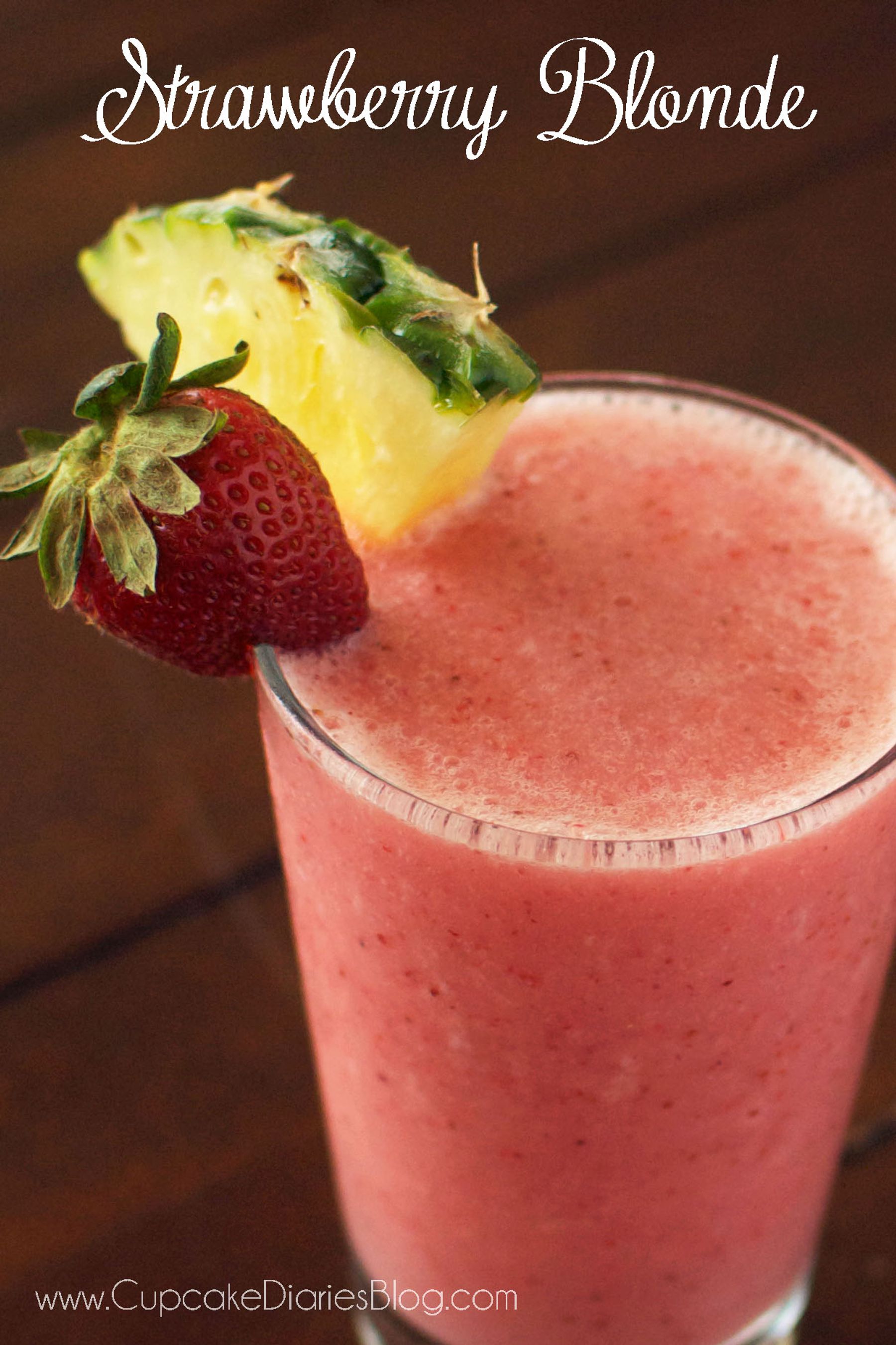A blended pina colada and strawberry drink. Perfect for a summer party!