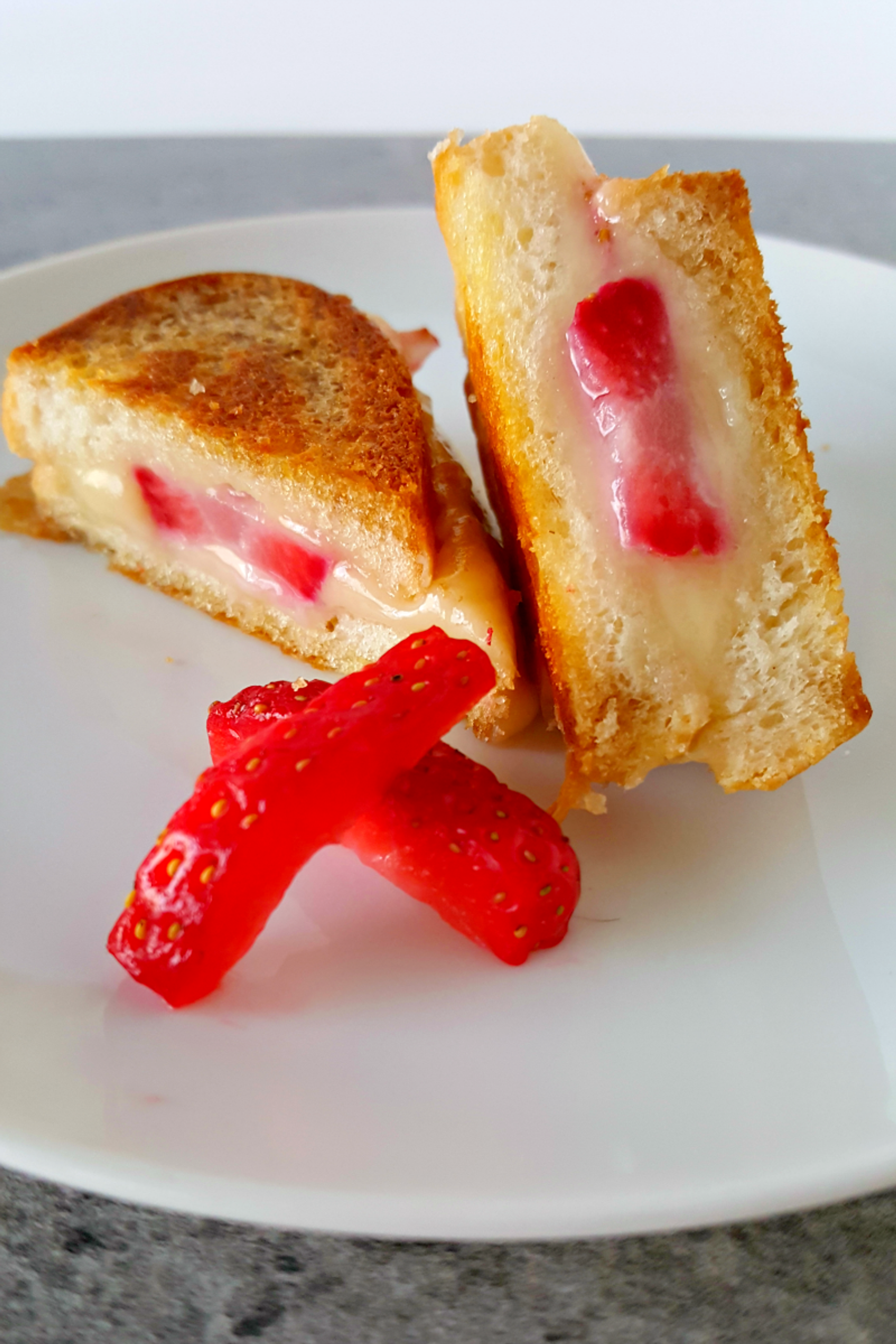 For #FreshTastyValentines I took creamy brie and paired it with luscious strawberries in these mini grilled cheese sandwiches. Strawberry Brie Grilled Cheese Bites are the perfect little snack for your loved one.