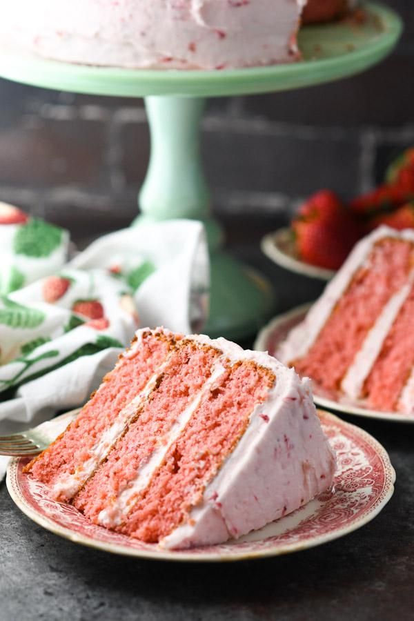 This easy, homemade Strawberry Cake is the best dessert for spring and summer! It's an old-fashioned strawberry cake recipe that's made with a box of cake mix, Jello, buttermilk and fresh or frozen strawberries. Finish off the moist layer cake with the most delicious strawberry cream cheese frosting for a simple dessert that's bursting with flavor!