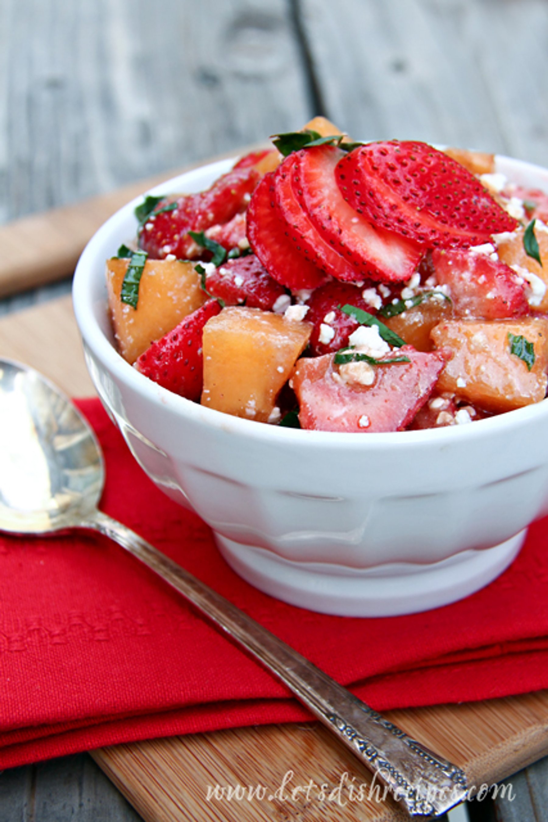 Strawberry Cantaloupe Salad with Mint & Feta