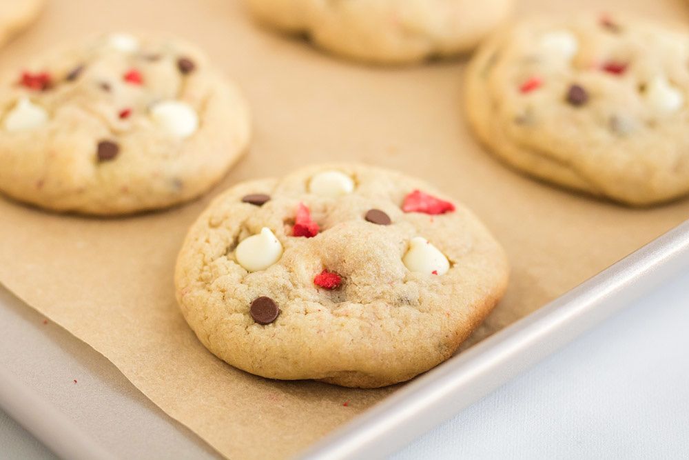 Strawberry Cheesecake Cookies January 09, 2020 5 Two types of chocolate chips and freeze dried strawberries baked into a delicious cheesecake cookie dough. These cookies are all kinds of deliciousness. try itSee the full directions on my site