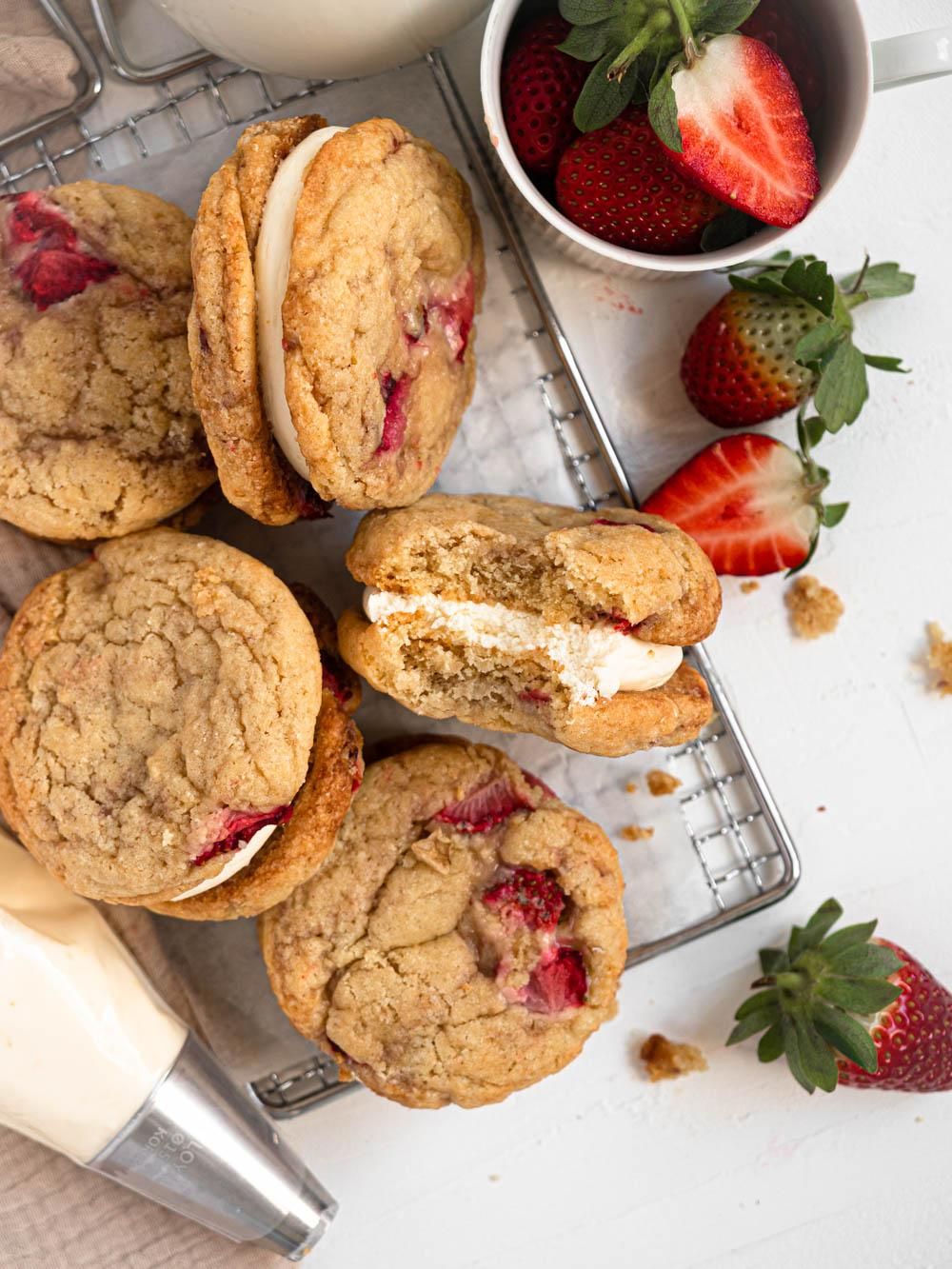 Full recipe here: https://zhangcatherine.com/strawberry-cheesecake-cookies/