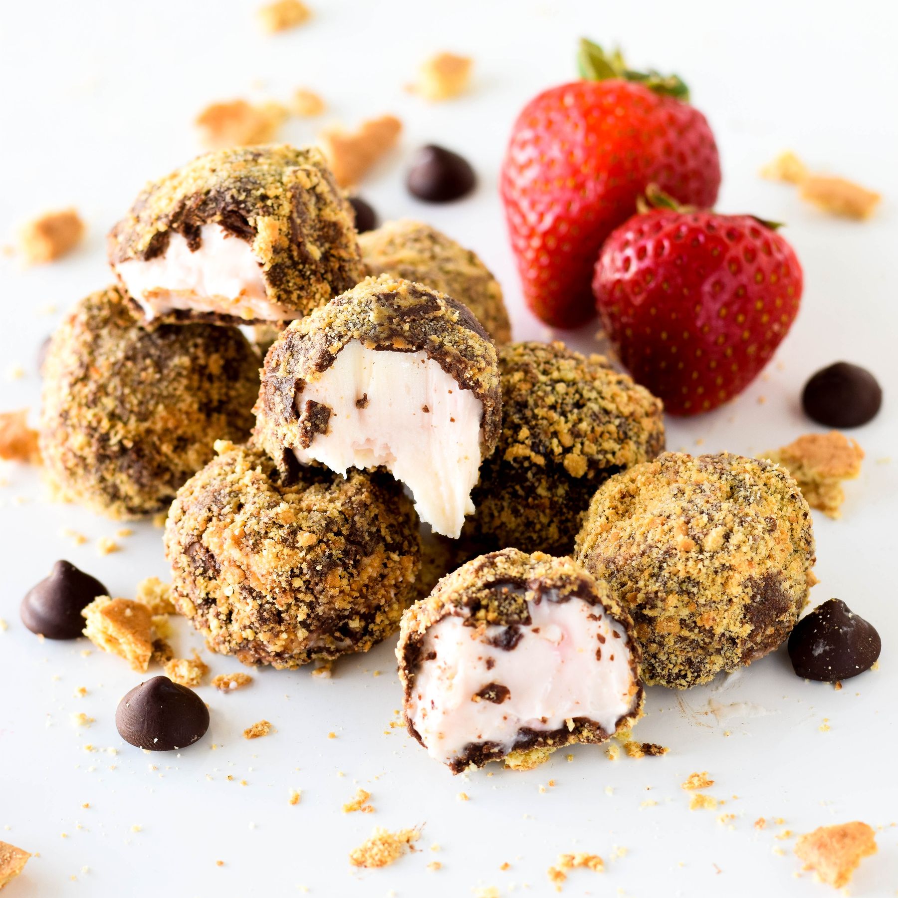 These strawberry cheesecake truffles are the perfect summer treat. They are simple and elegant at the same time. A creamy cheesecake filling loaded with chopped strawberries, dipped in dark chocolate and covered in graham cracker crumbs.
