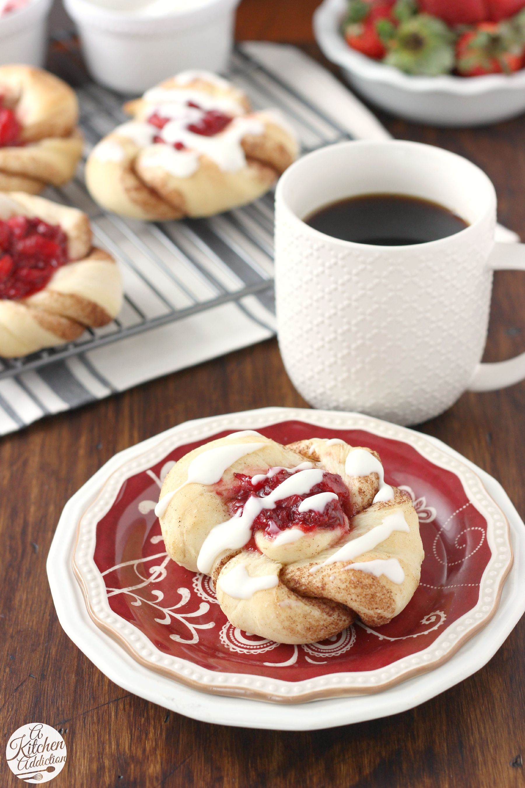 Tender, cinnamon twist pastries with a sweet strawberry filling!