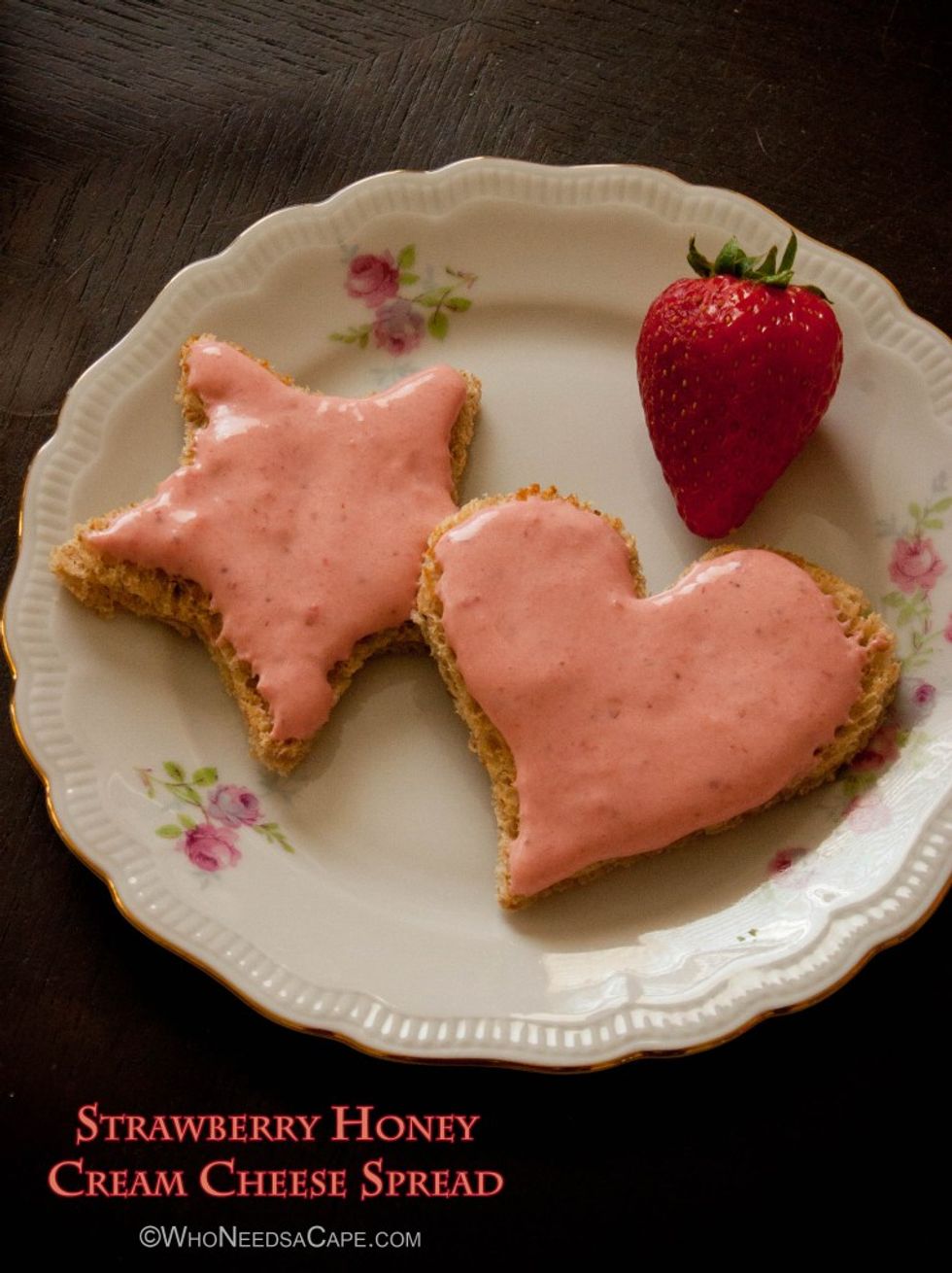 I wanted to have a go at making my own Strawberry Honey Cream Cheese instead of using the ones full of sugar at the store. I love that you can adjust this recipe to suit your preference. I made mine quite thin because I wanted it to be easy to spread for my kids. They LOVED this recipe. After they had finished their toast they were licking their little knives and scraping out the container. I used my immersion blender, but feel free to use a food processor or even a blender when combining the in