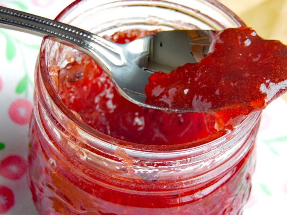 A sweet/tart jam made in under 10 minutes and processed in 10 minutes. Perfect jam for spreading on bread, biscuits, yogurt parfaits, or just eating by the spoonful!