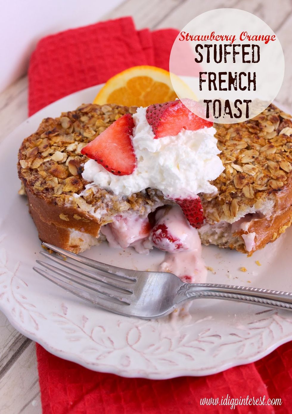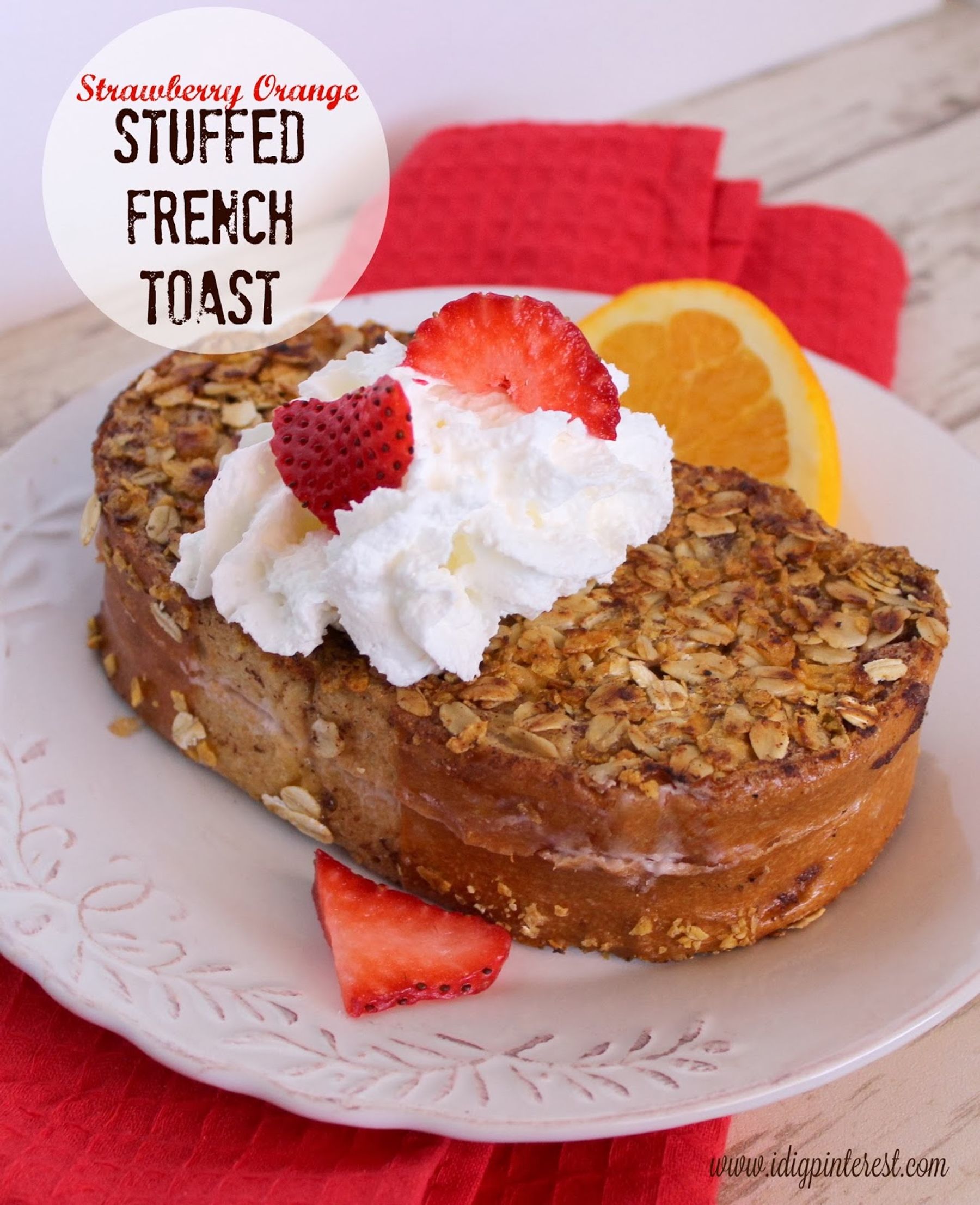 This stuffed french toast is going to knock your socks off! From the sweet and creamy strawberry filling with a hint of orange flavor, to the crusty cornflake and oatmeal topping, you will wholeheartedly pat yourself on the back for indulging. Worth. Every. Calorie.