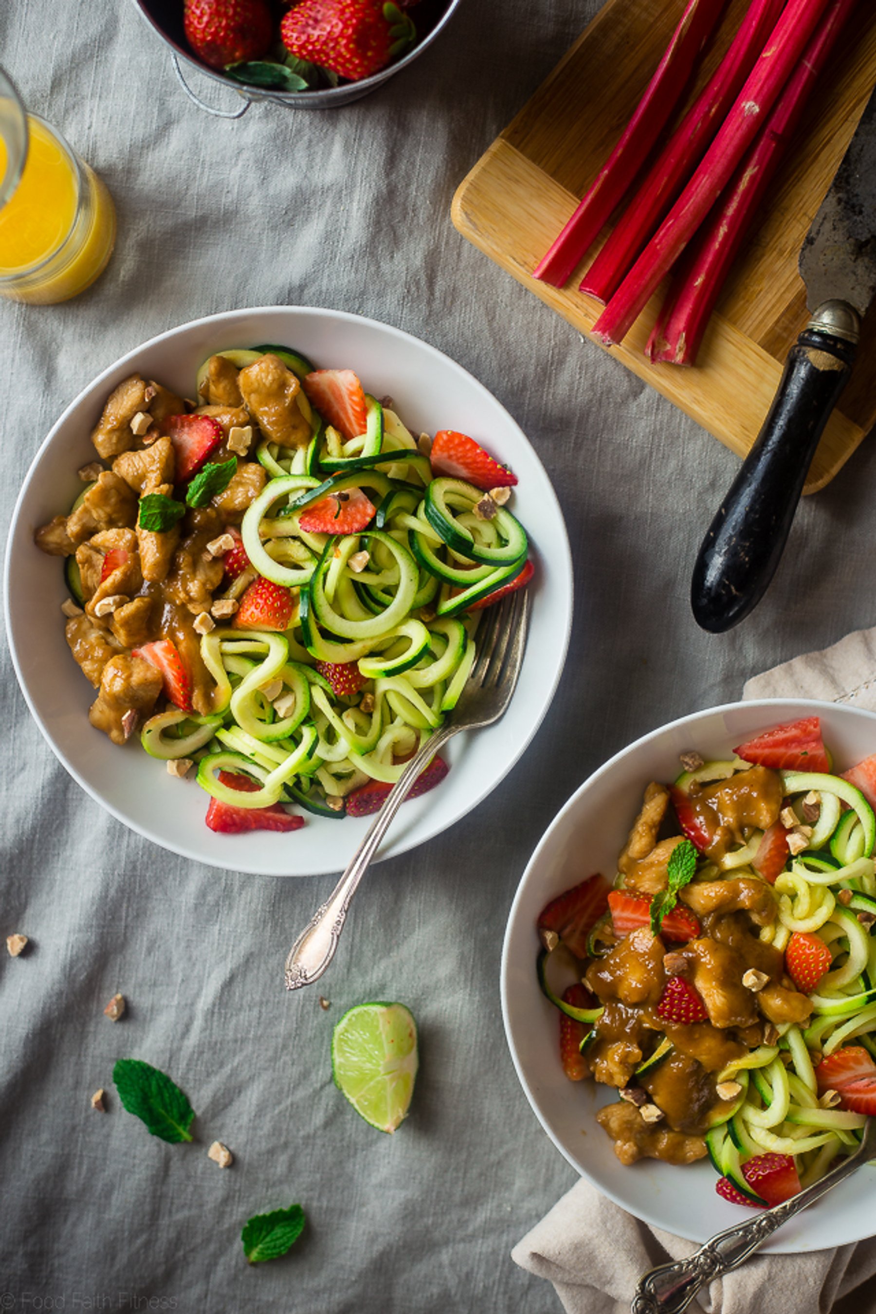 STRAWBERRY RHUBARB HEALTHY CHICKEN STIR FRY WITH ORANGE SAUCE AND ZUCCHINI NOODLES