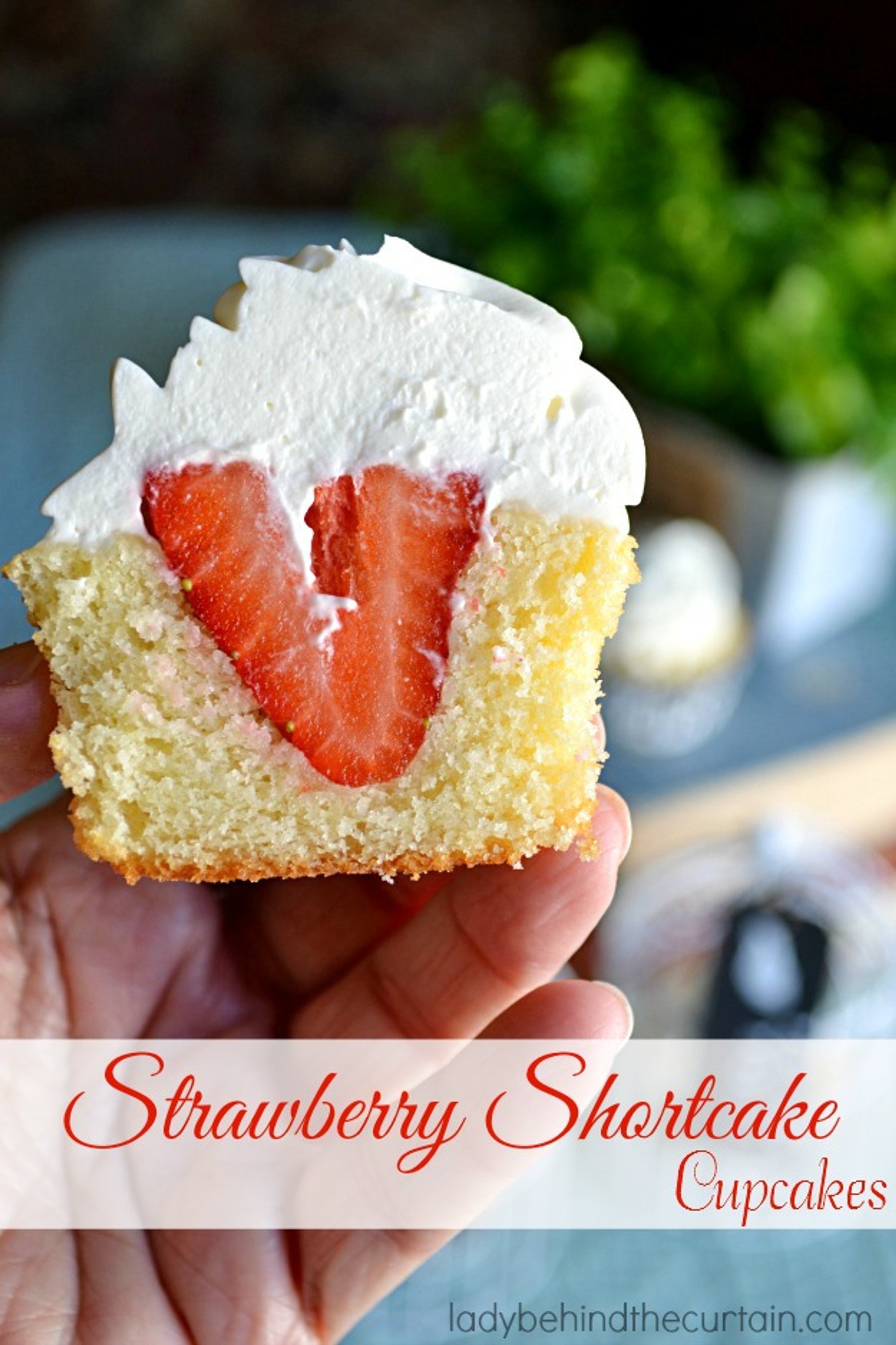 Strawberry Shortcake Cupcakes a dense sweet pound cake filled with a whole strawberry and topped with a whip cream frosting. Your own mini strawberry shortcake cupcakes! Nothing marks Spring more than Fresh Strawberries! Celebrate Spring with these wonderful fresh cupcakes. Perfect for Easter too!