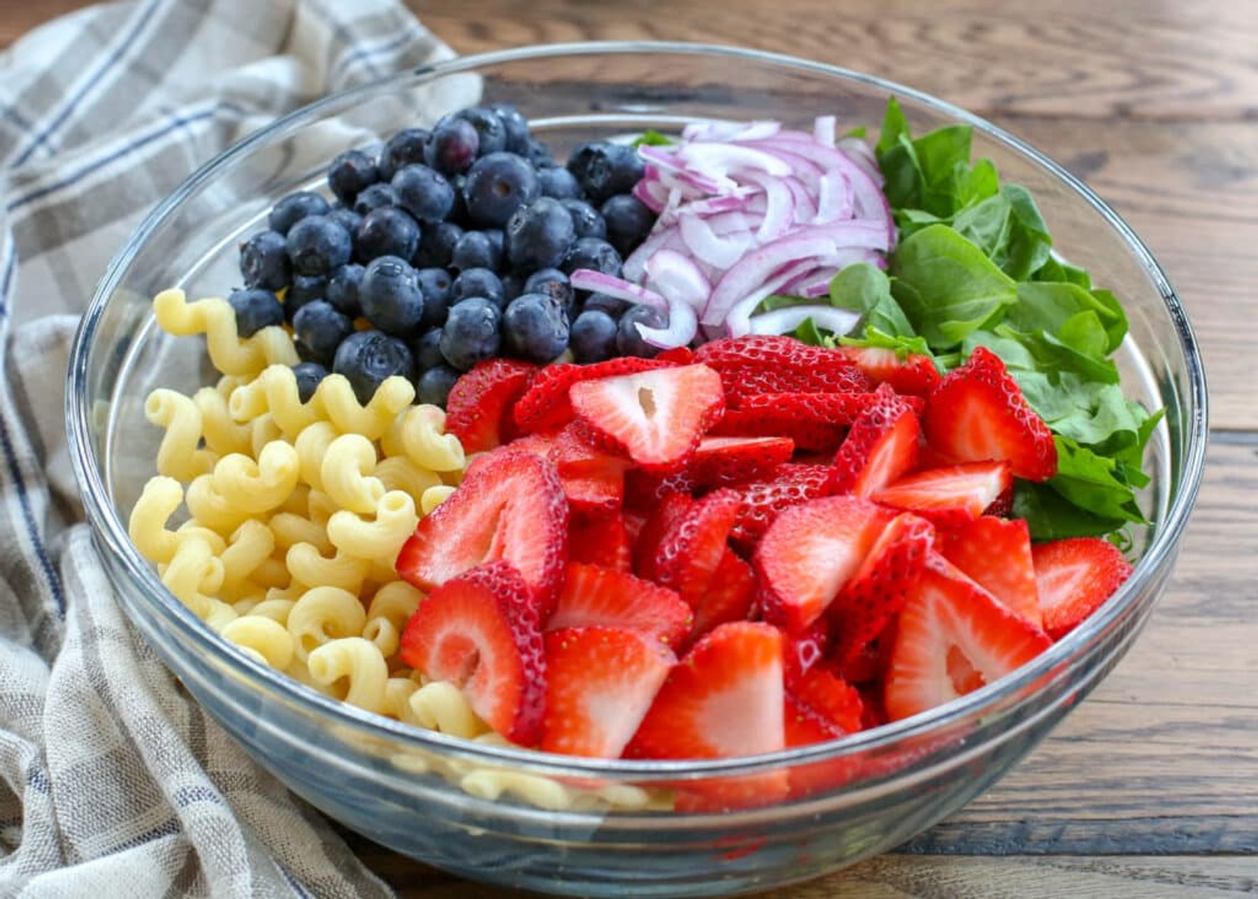 Strawberry Spinach Pasta Salad | barefeetinthekitchen.com