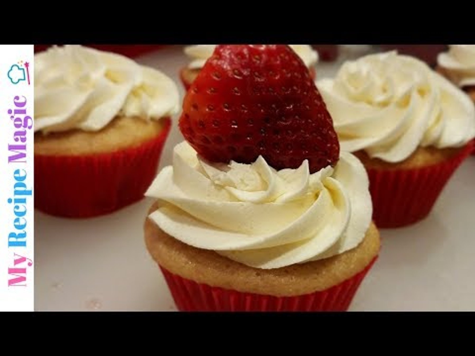 These sublime cupcakes are soft, sweet, packed with fresh strawberries & topped with silky smooth white chocolate frosting!