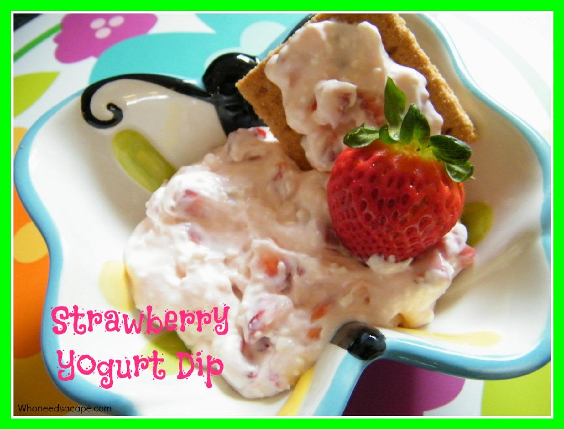 One thing my kids love to eat…fruit, and lots of it. So once strawberries hit the stores after a long winter, they are cheap & we buy a lot of them. After a few times cutting them up into bite size pieces, well, I’m pretty much over it, and I run out of ways to serve up strawberries. Yogurt is another thing the kids gobble up, to combine both the strawberries and yogurt and make into a dip, makes sense to me. You can use any brand/style/flavor yogurt, I had strawberry on hand the day I