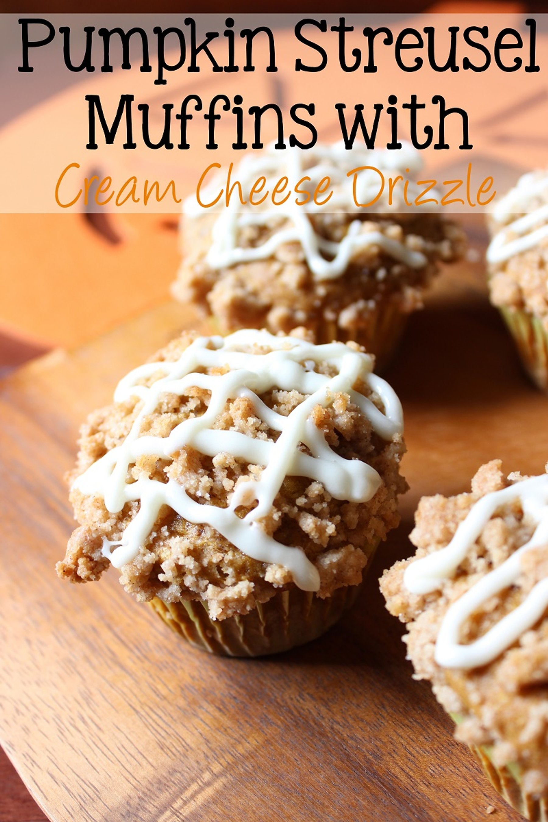 STREUSEL TOPPED PUMPKIN MUFFINS WITH CREAM CHEESE DRIZZLE
