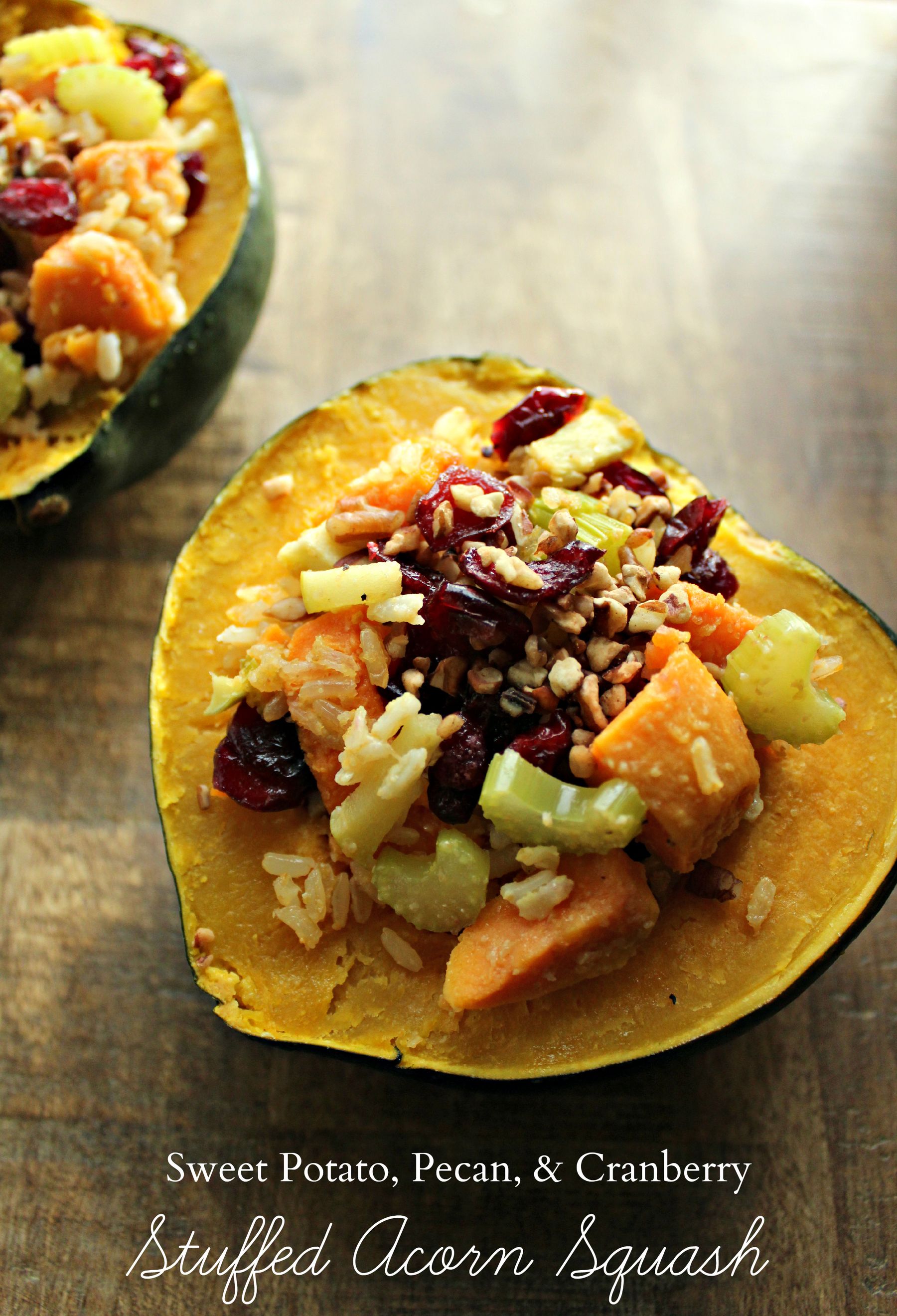 Stuffed Acorn Squash with Brown Rice, Pecans, & Cranberries