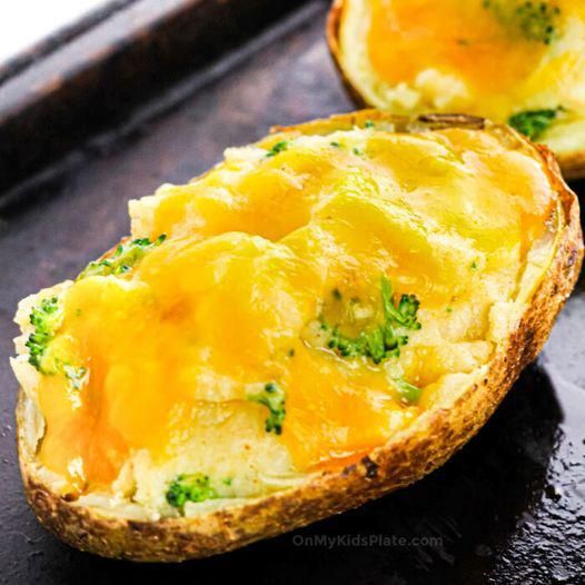 This cheesy cheddar broccoli twice-baked potato recipe is so gooey and delicious, the kids always ask for seconds! These tender potatoes make a hearty side perfect as a side dish for a weeknight or even served as an appetizer. This is a delicious potato and broccoli recipe the whole family will love!