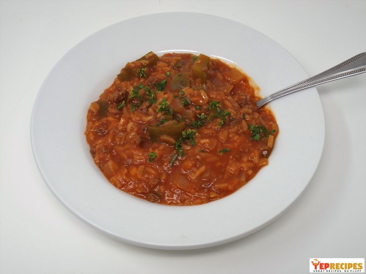 1. In a Dutch oven over medium heat brown the ground beef, breaking it up into small crumbles. If needed, drain off the fat.