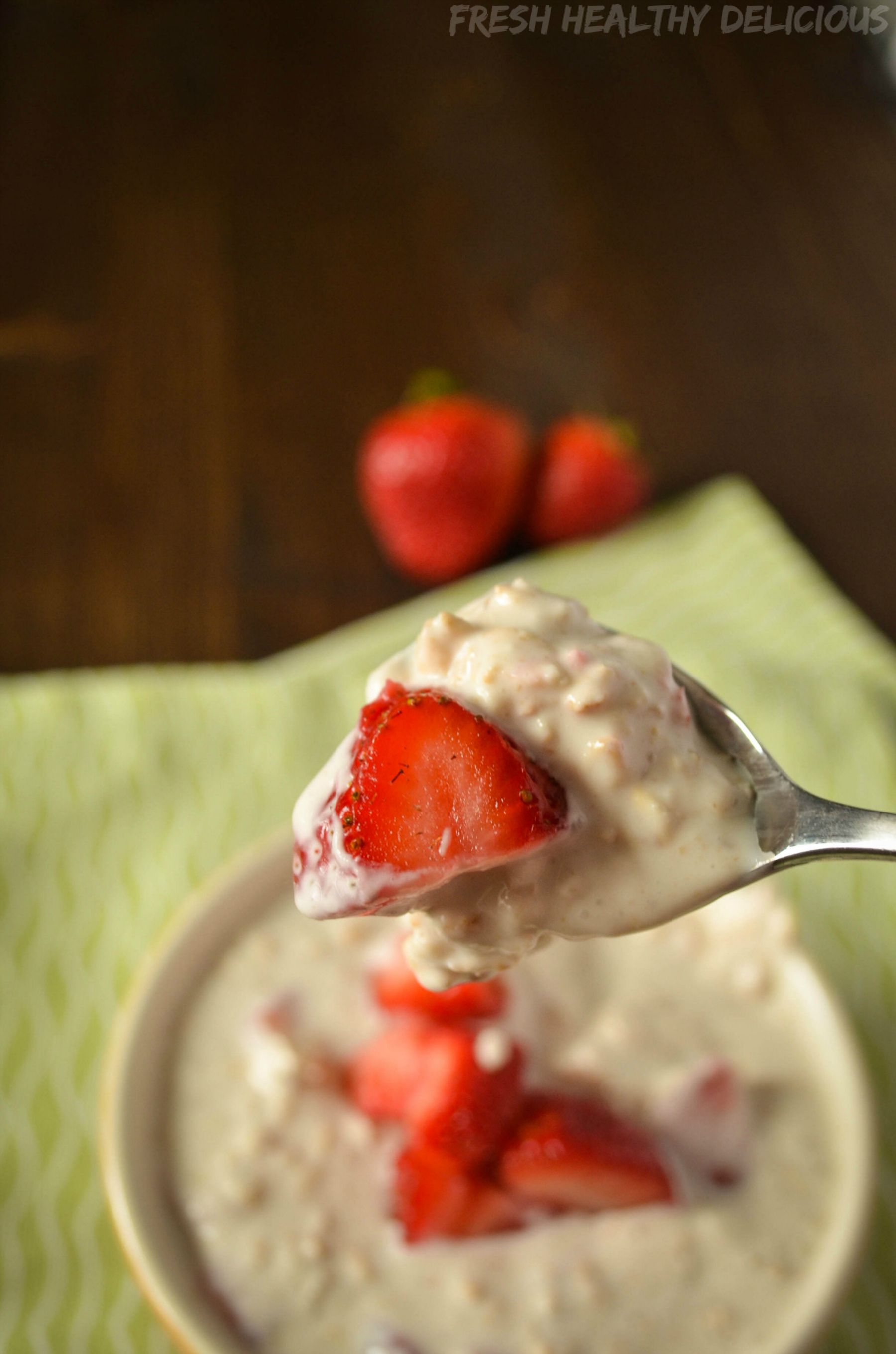 In the morning, stir and top with additional fresh strawberries (optional). Enjoy!