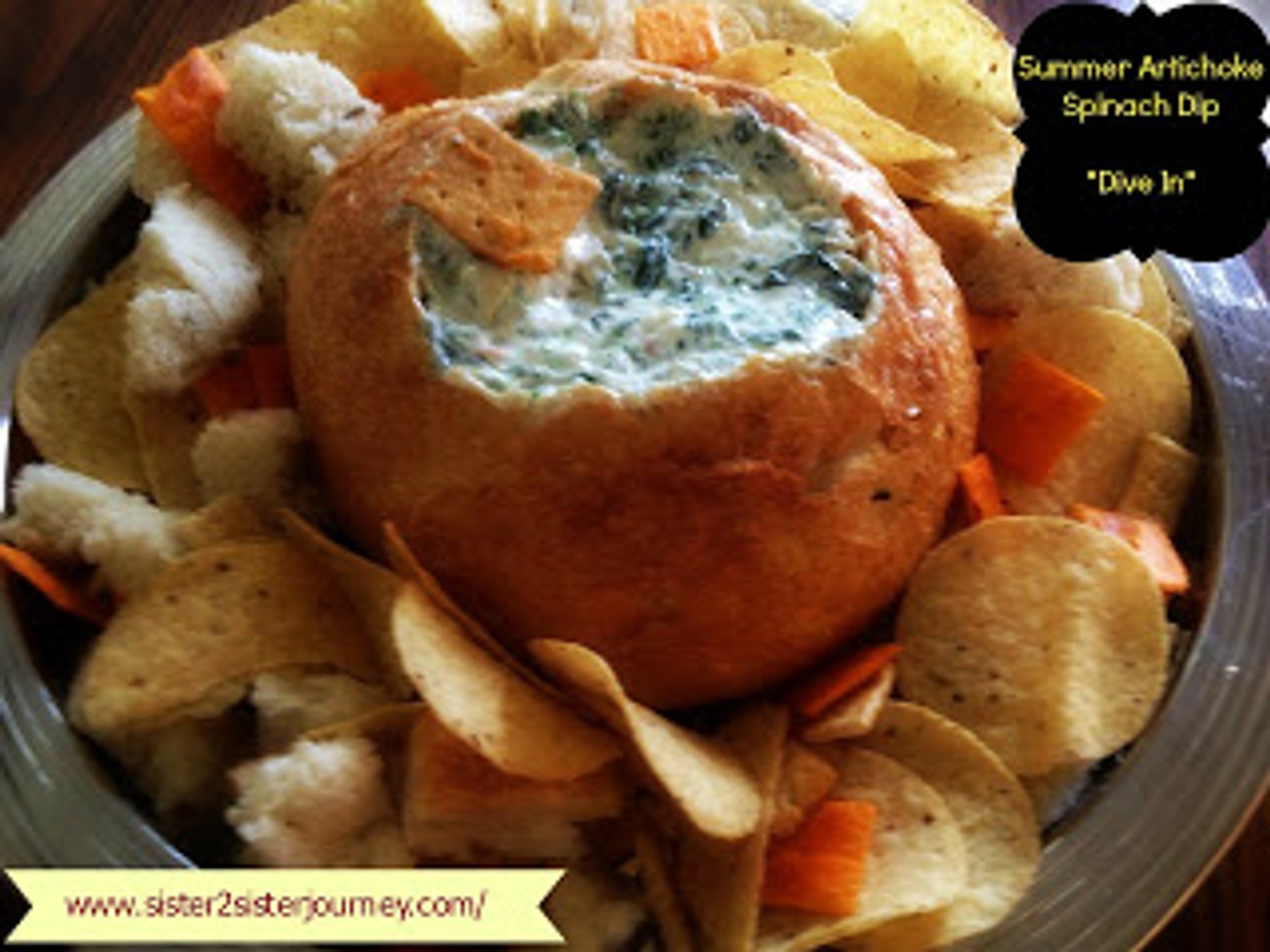 Between BBQs, picnics, and swimming parties quick snacks are always needed. Dive into the party the right way by making a Summer Artichoke Spinach Dip in a "pool". This snack not only looks cute, but tastes great. It is easy and quick to make and can be the talk of the party!
