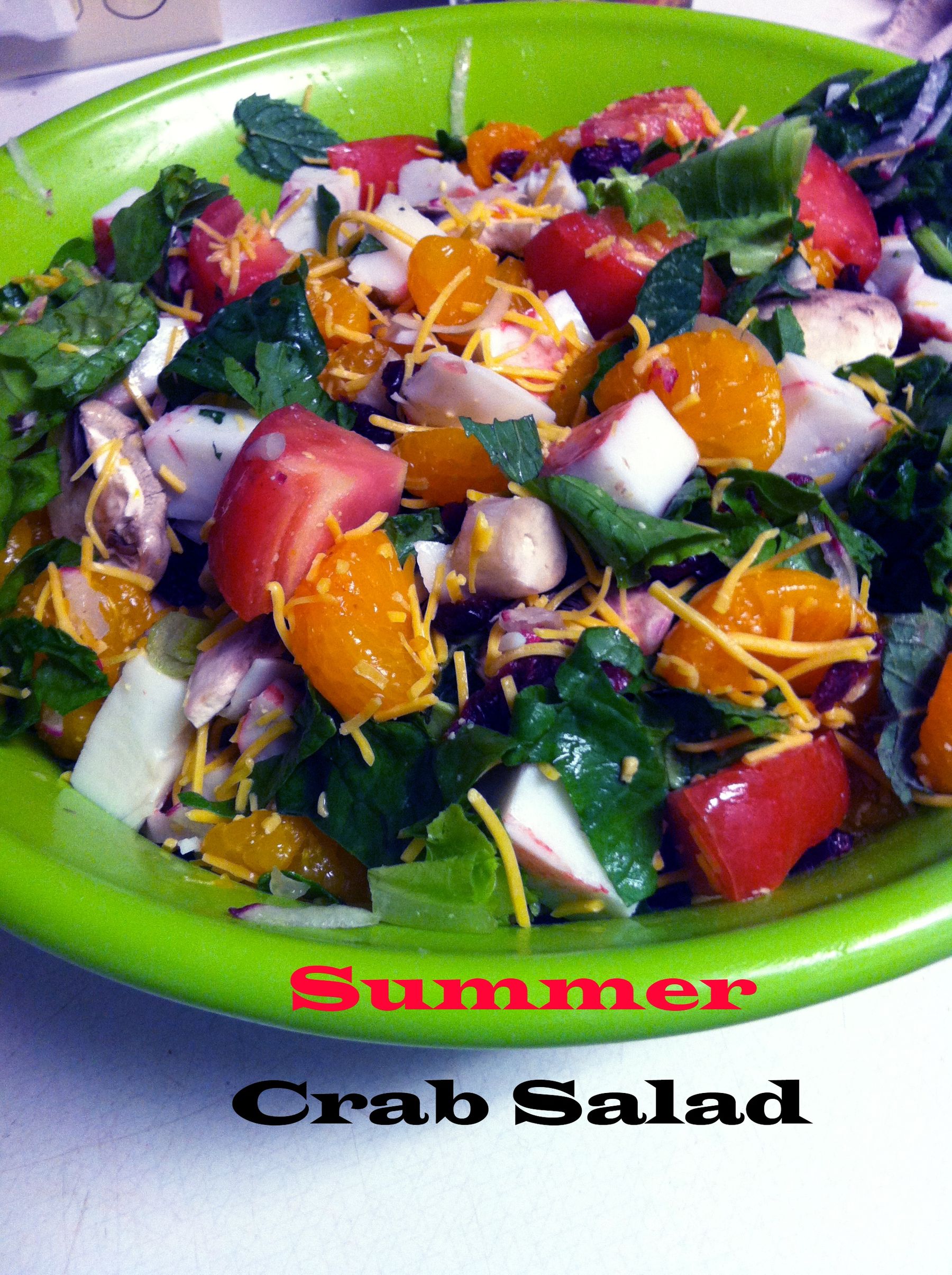Add all ingredients into large mixing bowl and toss till well blended. Serve cold with French bread, croutons, and your favorite dressing.