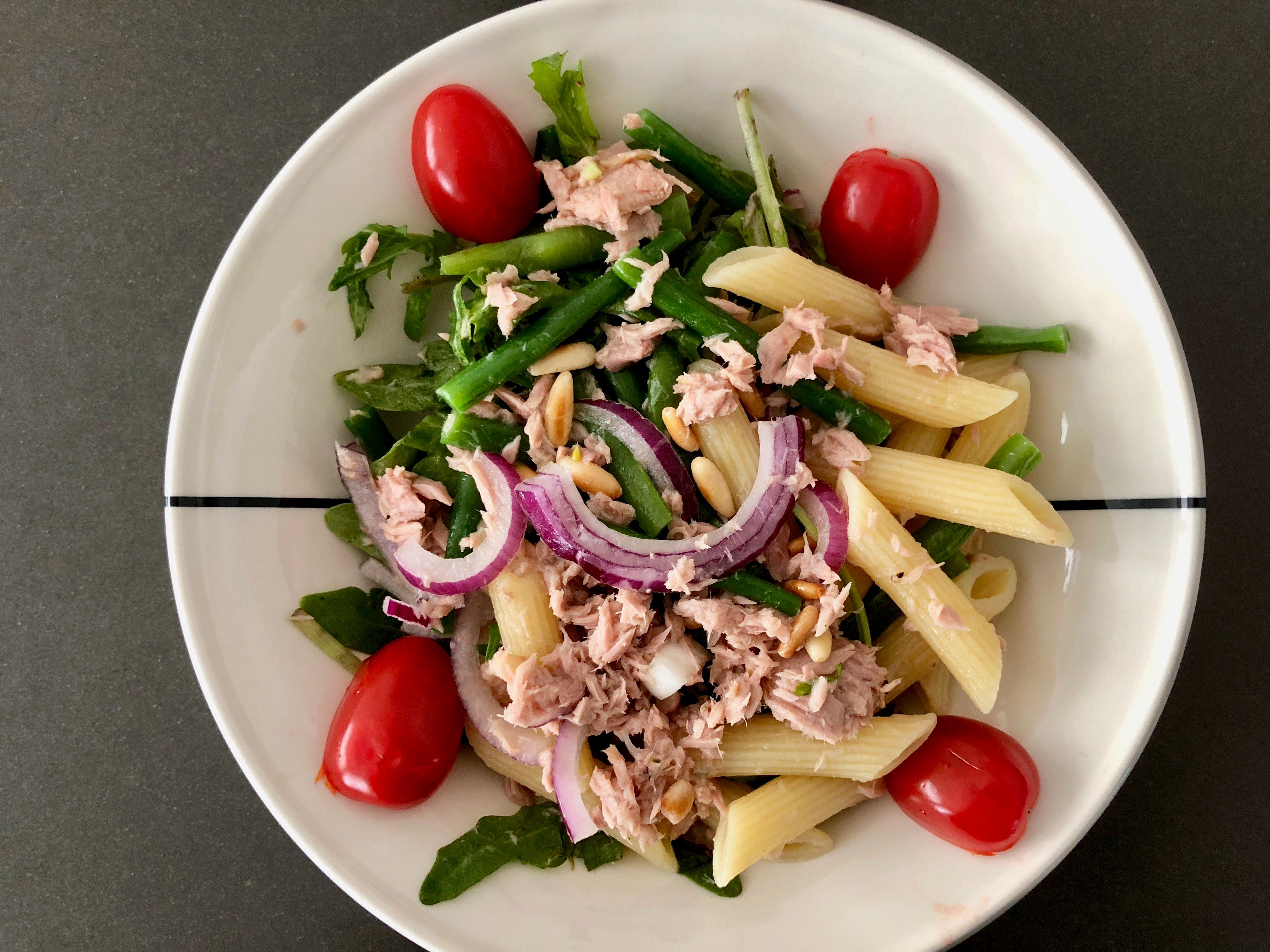 Summer pasta salad with green beans and tuna is the ideal quick and healthy lunch for a warm summer period. It is fresh, refreshing, and you can play with the ingredients up to your taste. You can for example add caper or cherry tomatoes, as in the version in the picture.