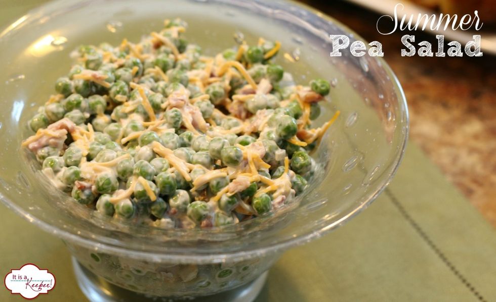 This recipe is one of my favorite no-cook recipes! Because you’re not cooking the peas, they have a great crunchy texture. And, when you combine the salty bacon (yes, I said BACON!) and the creamy dressing, you are in pea heaven.