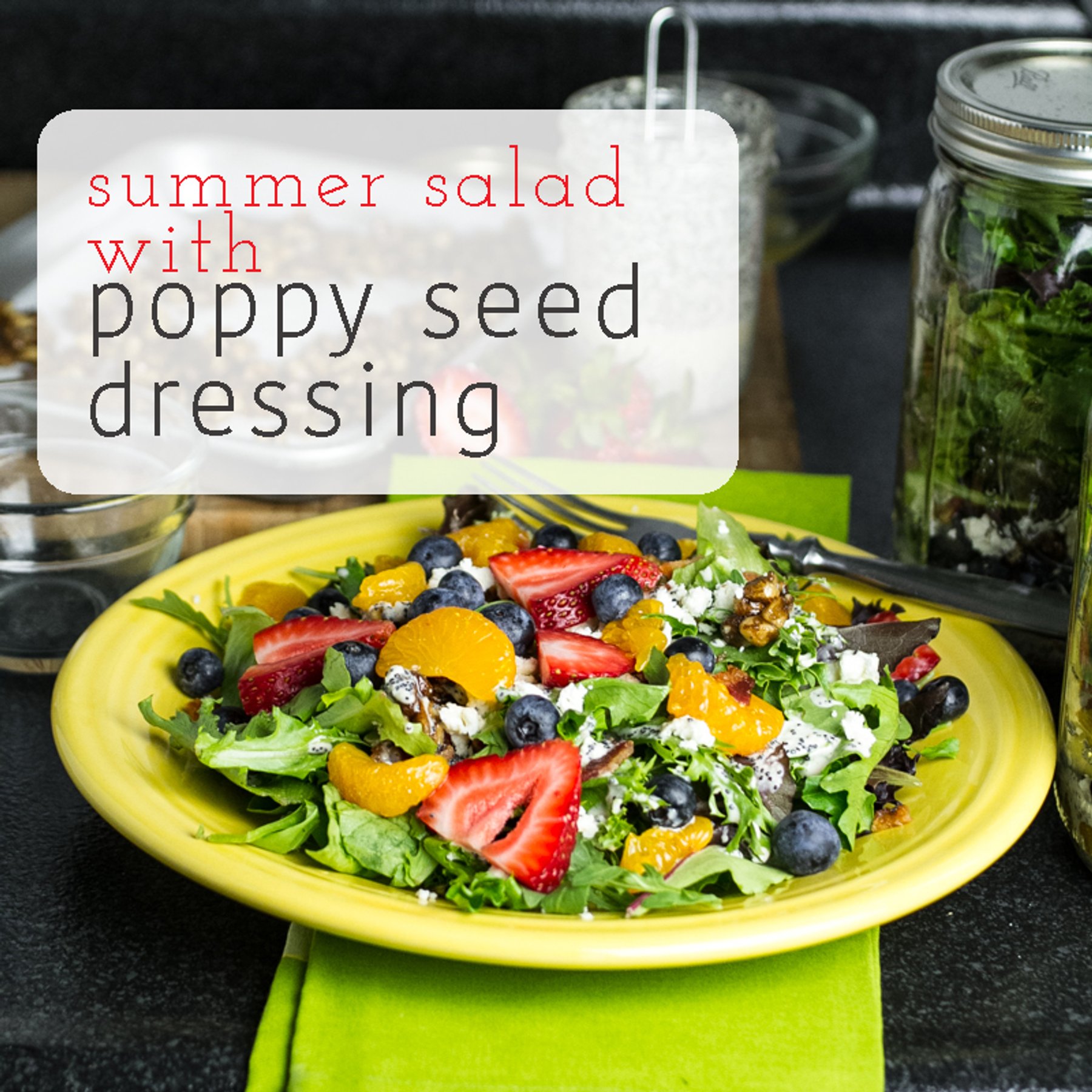 This summer salad with poppy seed dressing and fruit is a perfect lunch or dinner when you don\\\'t feel like cooking! It\\\'s great as a Mason jar salad too!