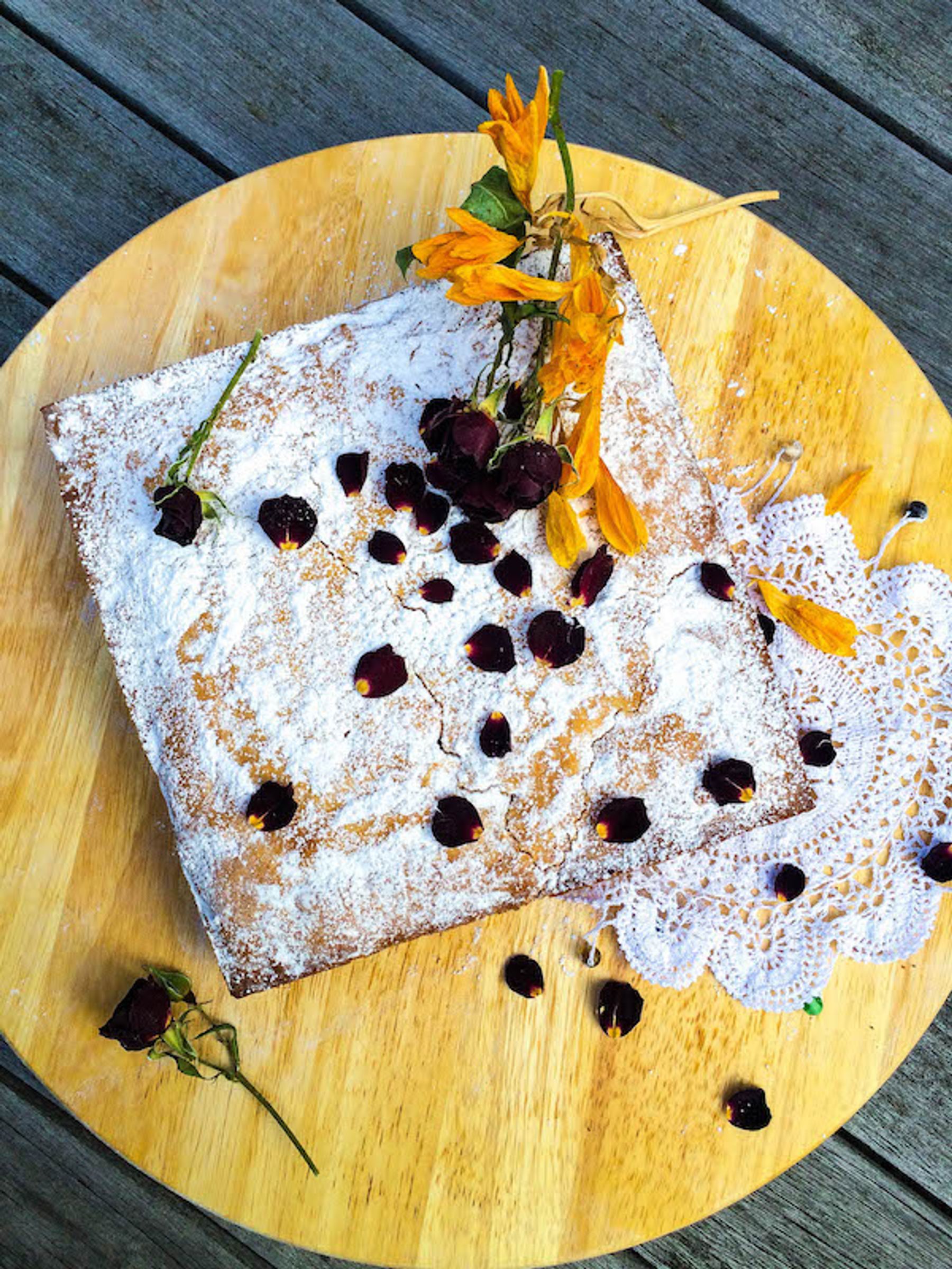 Preheat the oven to 325°F. Grease and flour a 8 x 8 inch baking pan.