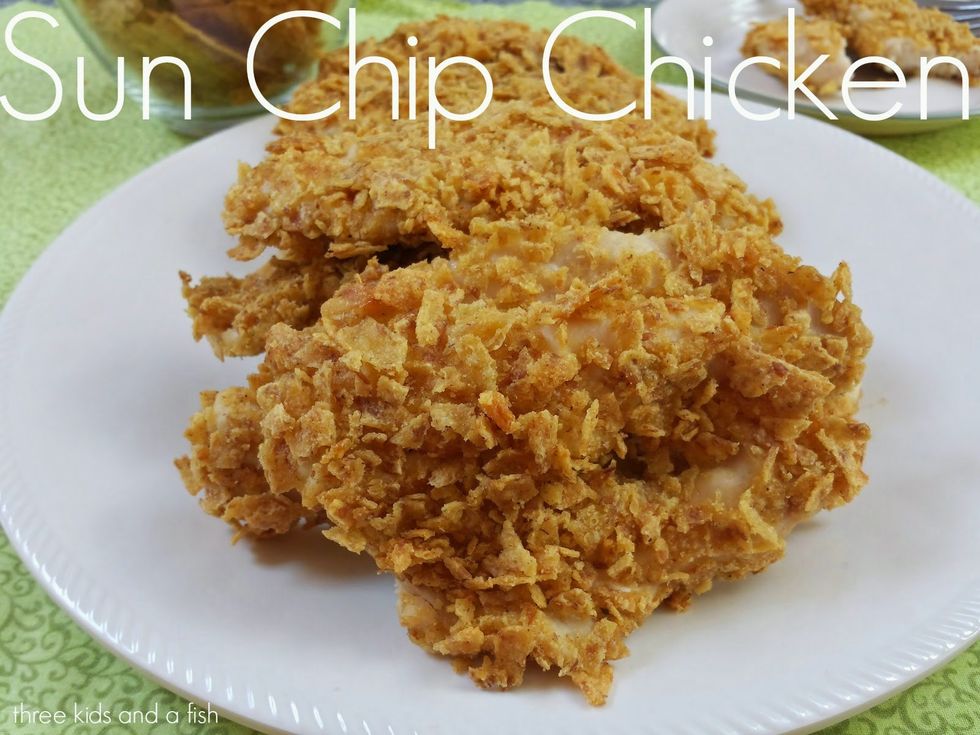 Crispy, crunchy French Onion Sun Chips coat the outside of these juicy chicken tenders. The kids were in disbelief as I reached into the pantry, grabbed their favorite chips and began to crush them! They weren't so sure that using them to coat the chicken was a bright idea, and one taste of this chicken changed their minds! They have been asking for Sun Chip chicken tenders ever since! This simple to make chicken recipe is worth making again!