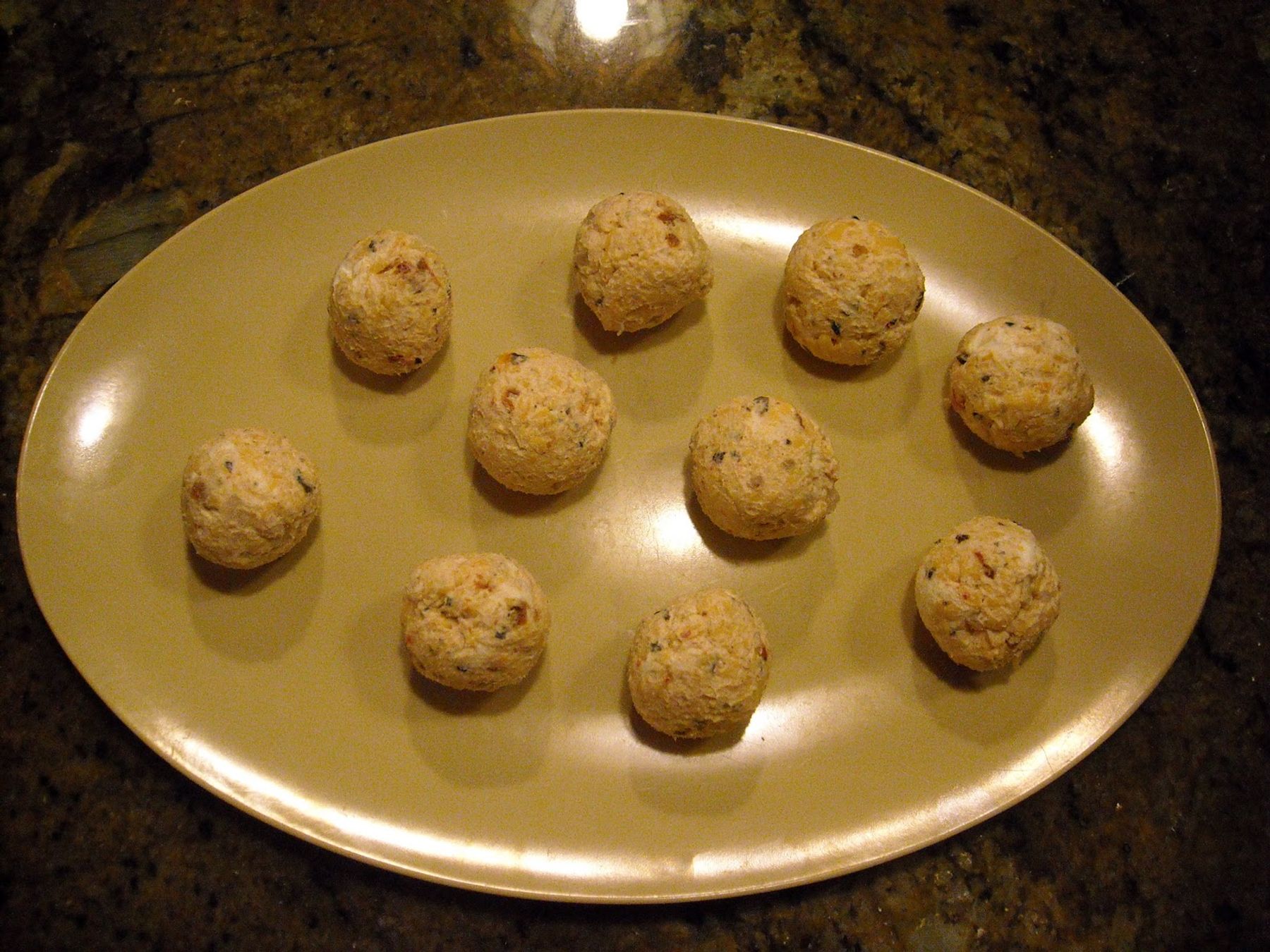 Bacon-coated mini cheese balls. Perfect pot-luck dish.