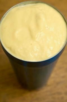 Place all of the ingredients into a blender and blend until smooth.Add more orange juice if smoothie is too thick.