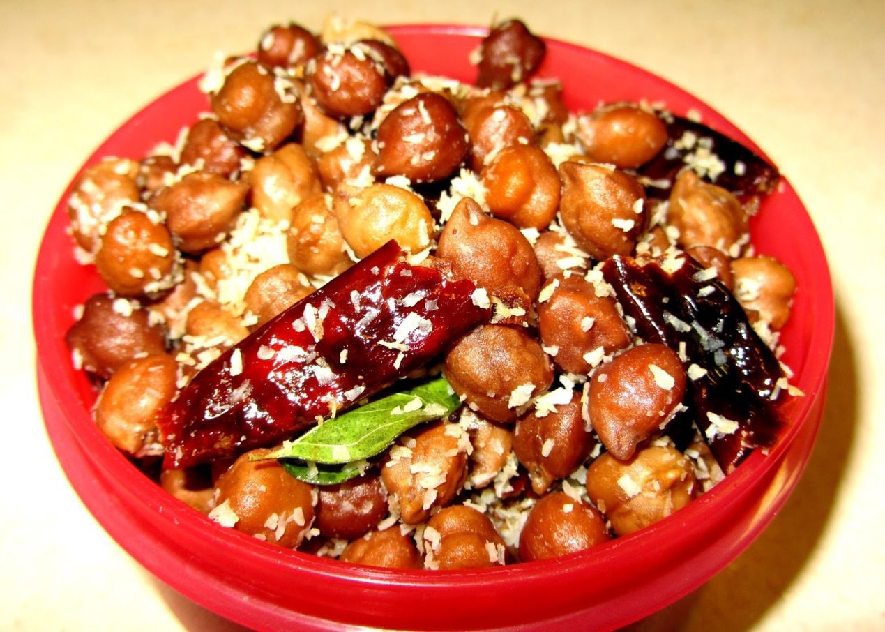 Chana sundal is a south indian stir fried dish made with white chickpeas. sundal is basically a dry legume-lentil preparation spiced, tempered along with fresh coconut.