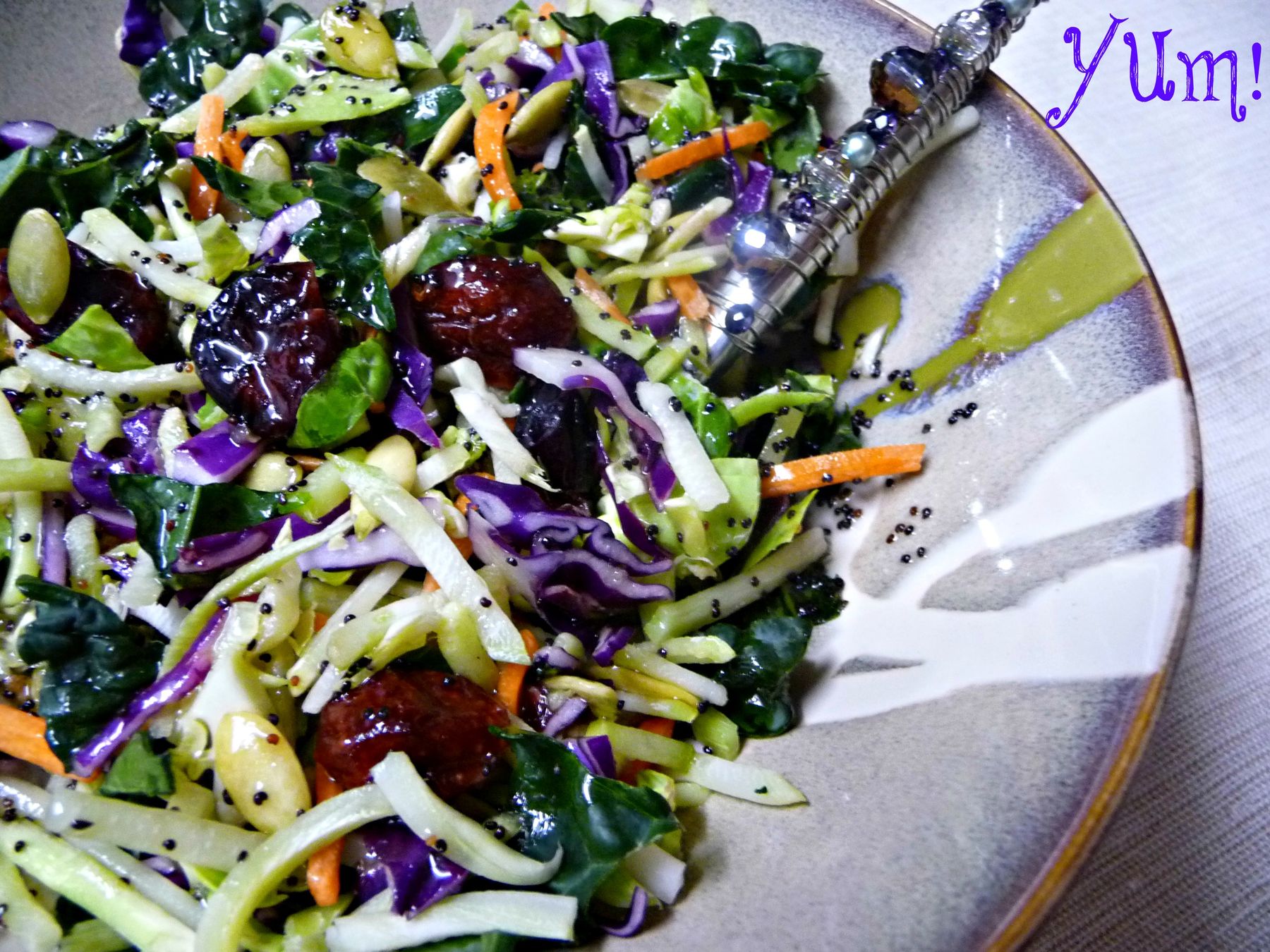 This salad is absolutely delicious. Even veggie haters will have a hard time turning this salad down. The poppy seed vinaigrette is sweet, and the vegetables are chock full of antioxidants