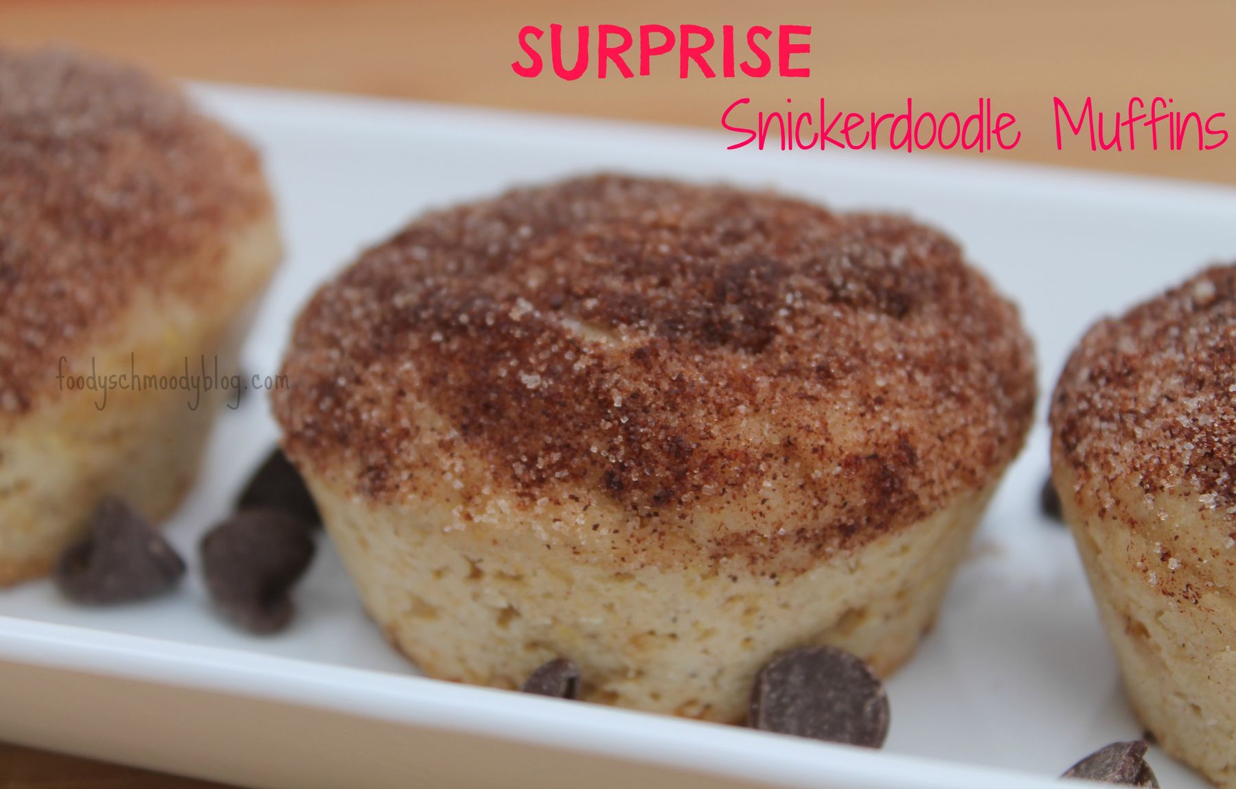 A cinnamon/sugar snickerdoodle muffin with just a tad of chocolate nestled in the center, for a sweet surprise