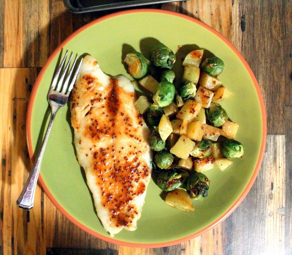 Swai with Potatoes & Brussels Sprouts in Sweet Mustard Sauce
