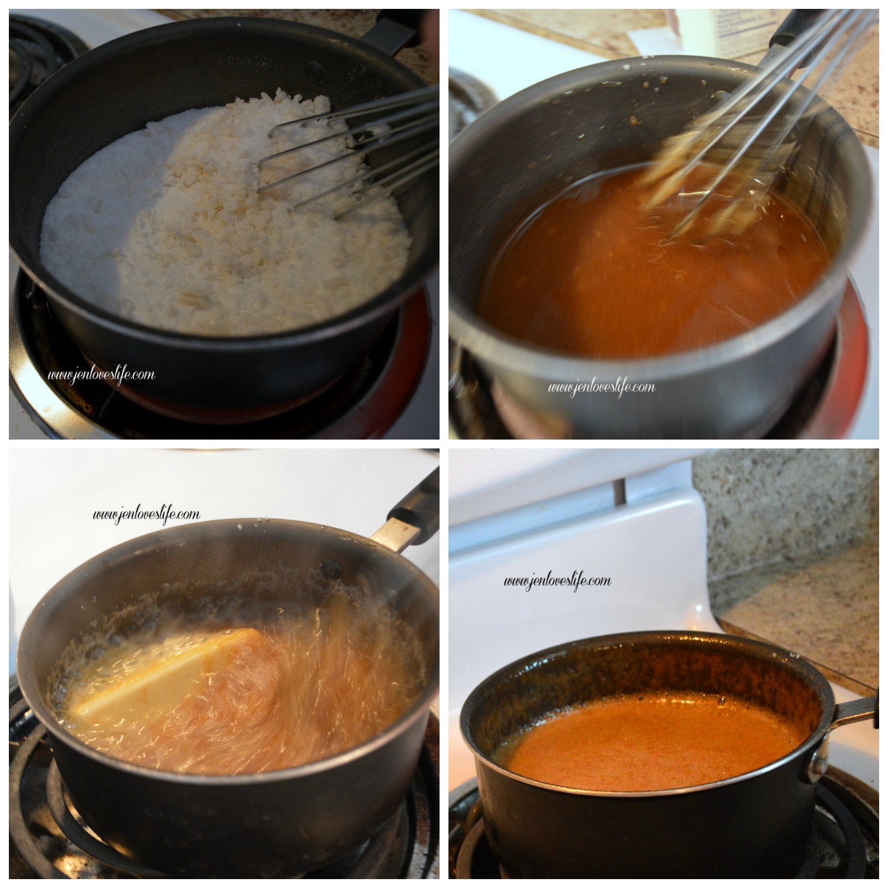 Cook sugar on medium heat until it is completely melted. Make sure to stir the sugar constantly. Once the sugar is melted, add butter. Continue stirring and cooking over medium heat for five minutes....
