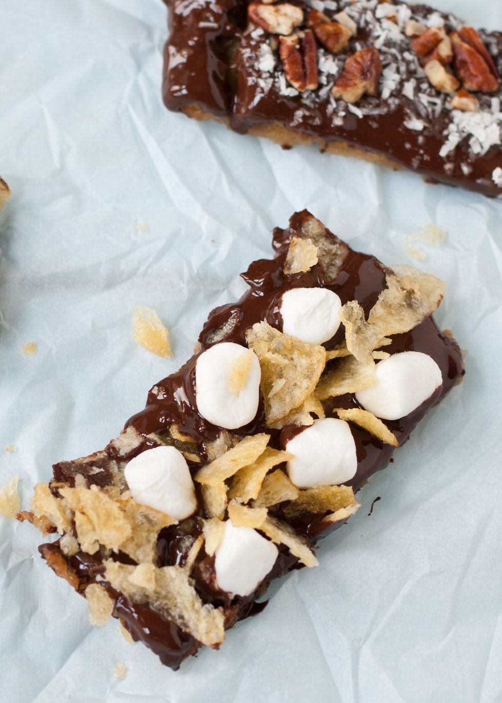 The sweet and salty crunch of these chocolate cookie bars is totally irresistible. Customize the toppings with your favorite nuts, candies, and potato chips!