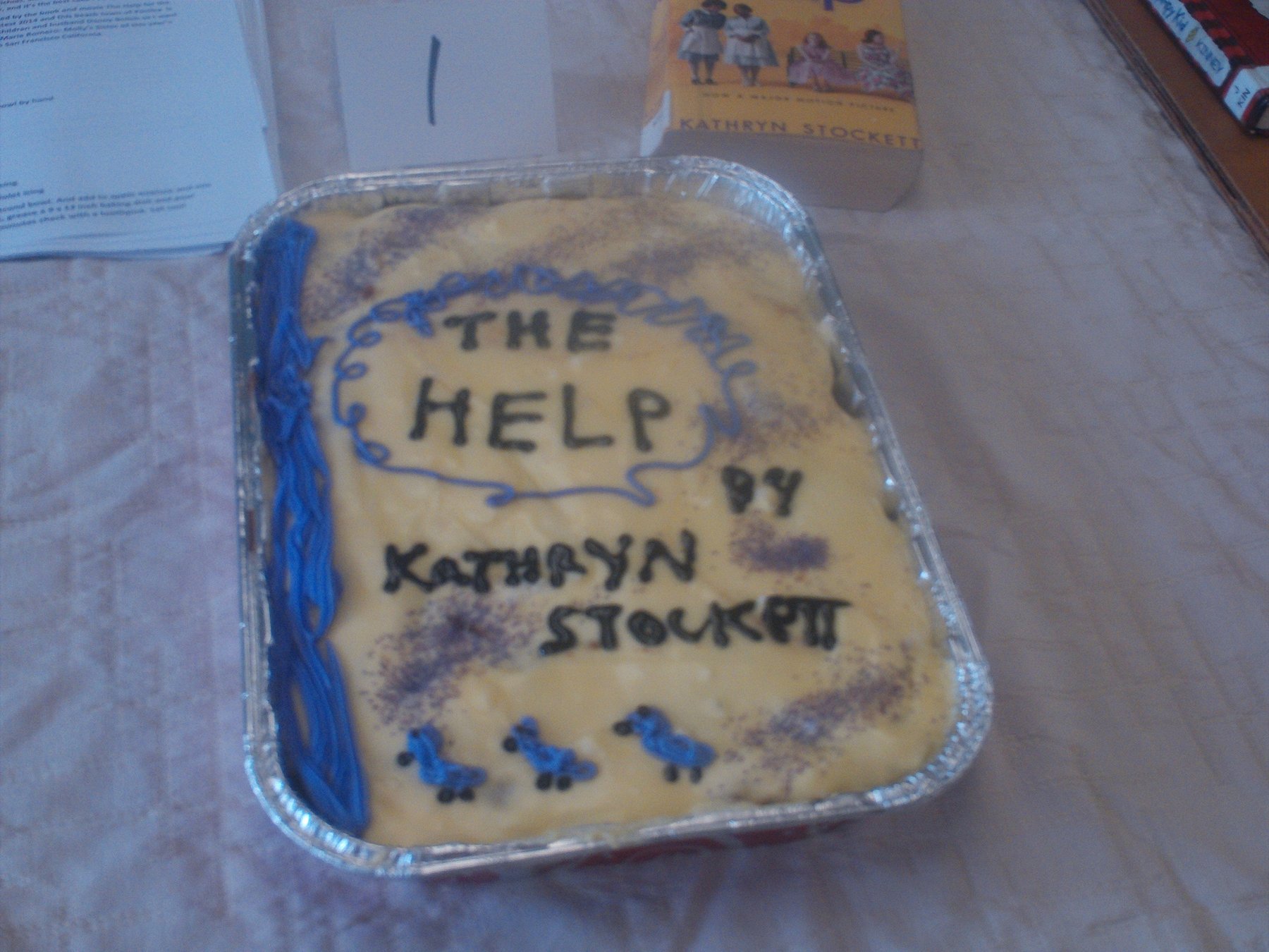 this recipe came from a neighbor of mine and its one of the best recipes I ever tasted. it won 2 awards at the literary cake contest past march for best tasting cake and best decoration so I hope you enjoy! this frosting decorations is inspired by the book novel and movie the help