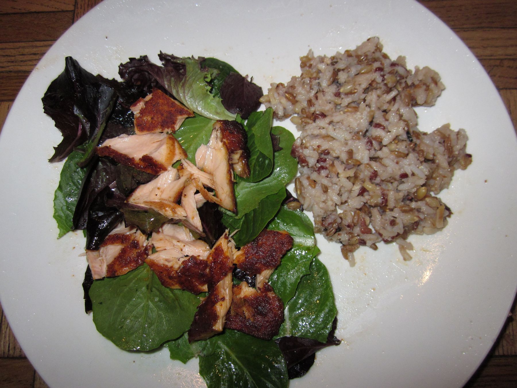 This is an amazingly delicious and healthy recipe! The spice rub from the salmon mixes with the sweet citrus dressing on the salad and is a great combination. And the leftover salmon makes great salmon patties for another meal.