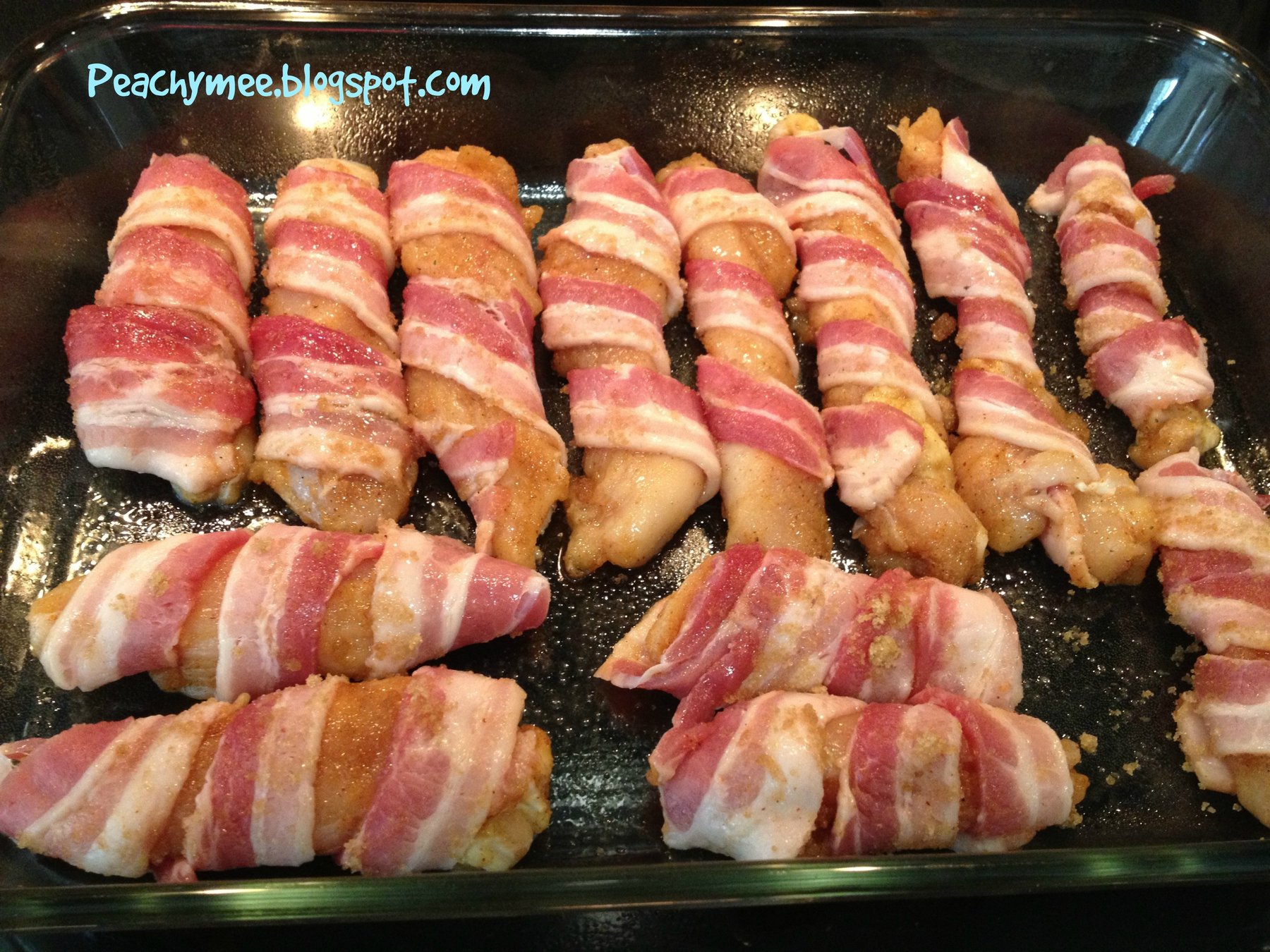 Directions: -Cut each breast into 3 pieces, season all the chicken with the spices, then wrap a bacon slice around each piece, roll in brown sugar and place into a greased baking dish. -Bake at 400 degrees for 30 to 40 minutes or until chicken is cooked through and bacon is nice and brown and crispy. (Delicious served with mashed potatoes with some of the gravy from the chicken drizzled on top.) Enjoy!
