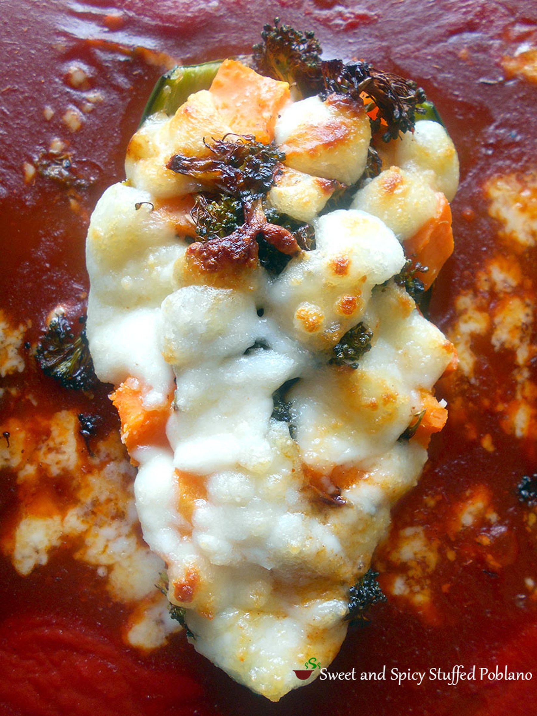 This sweet and spicy stuffed poblanos takes less than 40 minutes to make. I ate it as a lunch meal but it works great as a side dish with any side meal.
