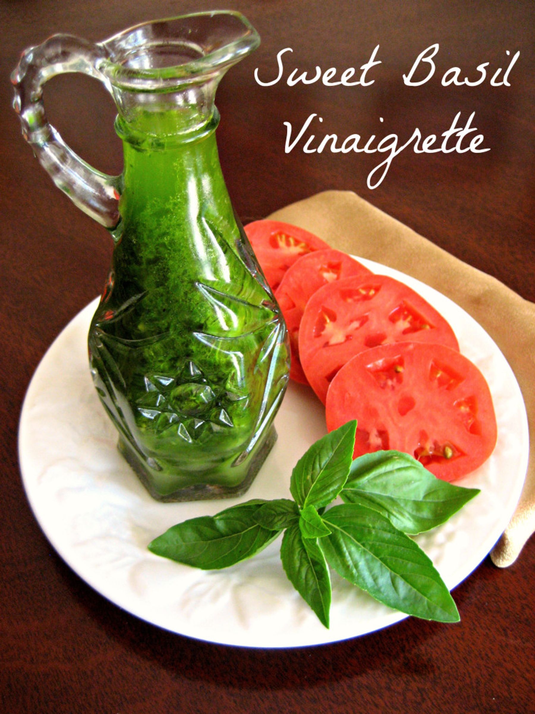 Place basil, vinegar, garlic, honey, sugar if using, and mustard in the jar of a blender. Blend until desired texture is reached (I like a little texture left from the basil). With blender running on low,...