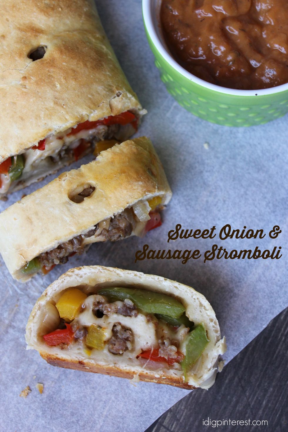 Weeknight meals are made a cinch and totally yummy with this Sweet Onion and Sausage Stromboli that's also loaded with peppers and cheese!